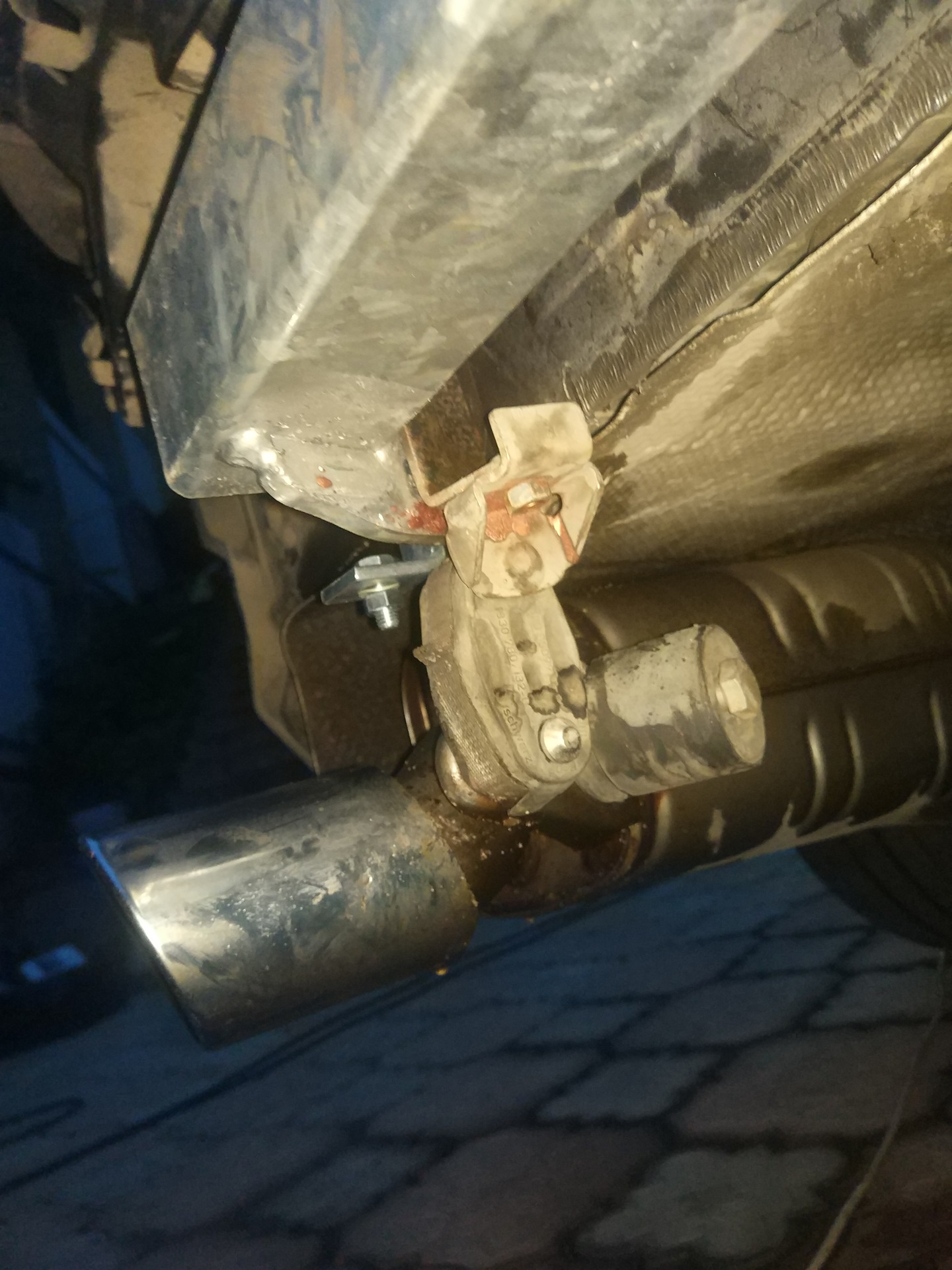С глушителем я решил просто, просверлив отверстие сделал уголок на который и повесил глушитель. Мне вот интересно как установщики это решают?)))) Есть подозрение, что ни к чему не крепят и оставляют болтаться?))