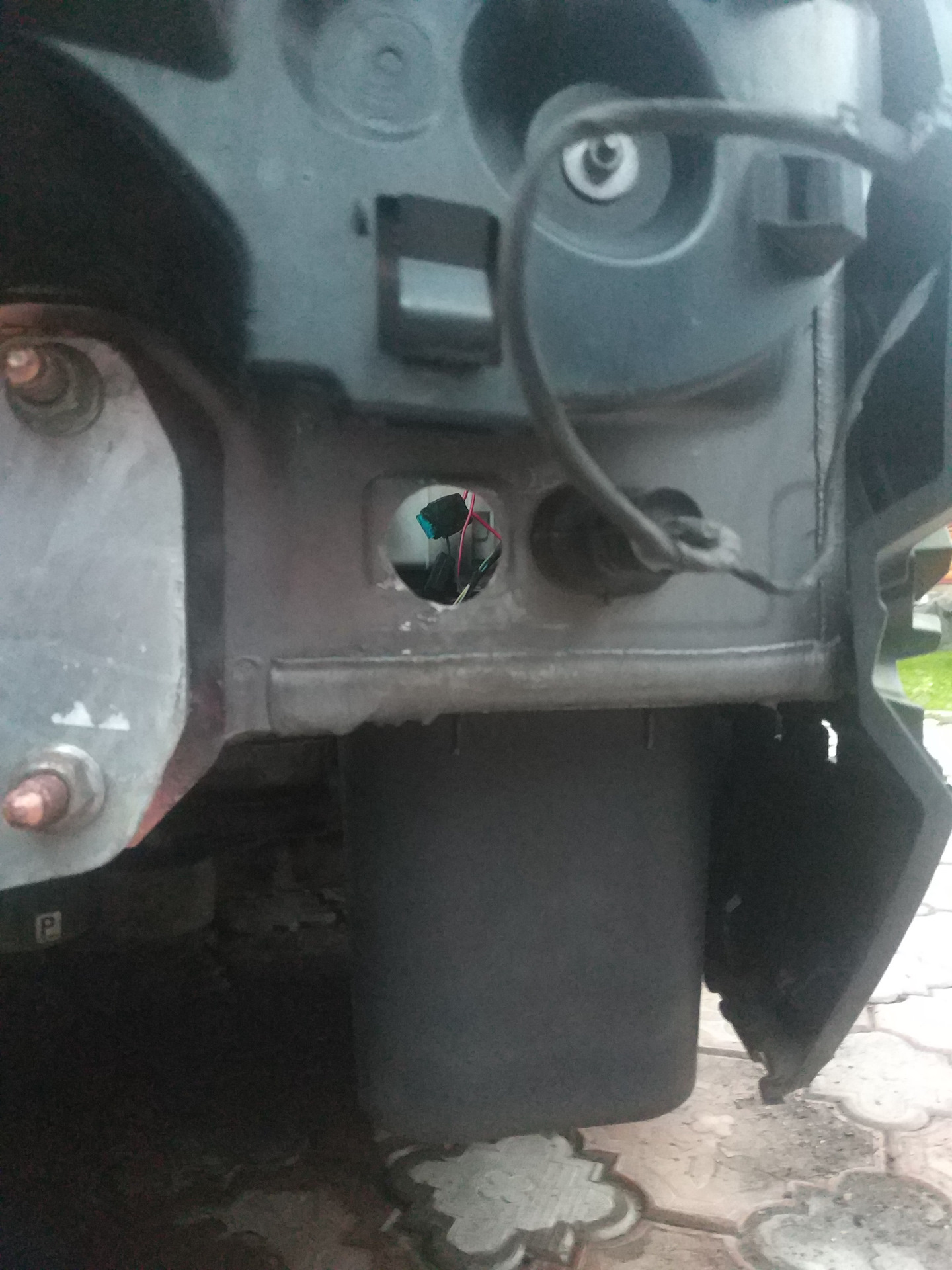 Отверстие для проводки есть готовое слева. Но я планировал еще дорабатывать электрику и мне удобнее было проникнуть справа. Так, как мне нужен будет повторный доступ и я смогу туда залезть, сняв только нижнюю защиту. Которая у меня кстати с трещиной и завтра ее буду варить.