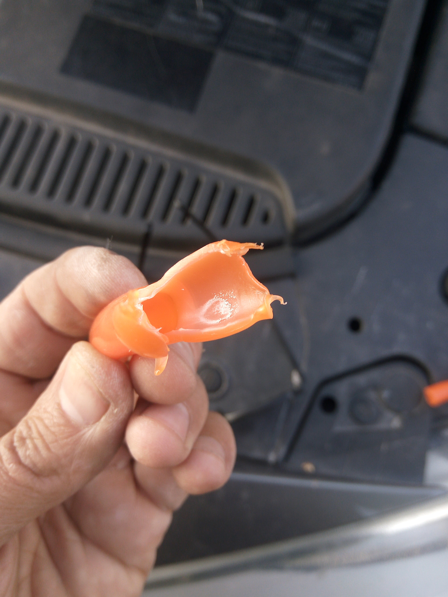 Машина стояла возле дома и перед тем, как загнать ее в гараж, в очередной раз заглянул под капот и… бензостойкость полиэтилена под давлением очень сильно преувеличена ! Там, где внутренняя трубка была вставлена в наружную всё было хорошо, а участок около 1.5 см где наружная трубка контактировала с топливом ее деформировало (раздуло).