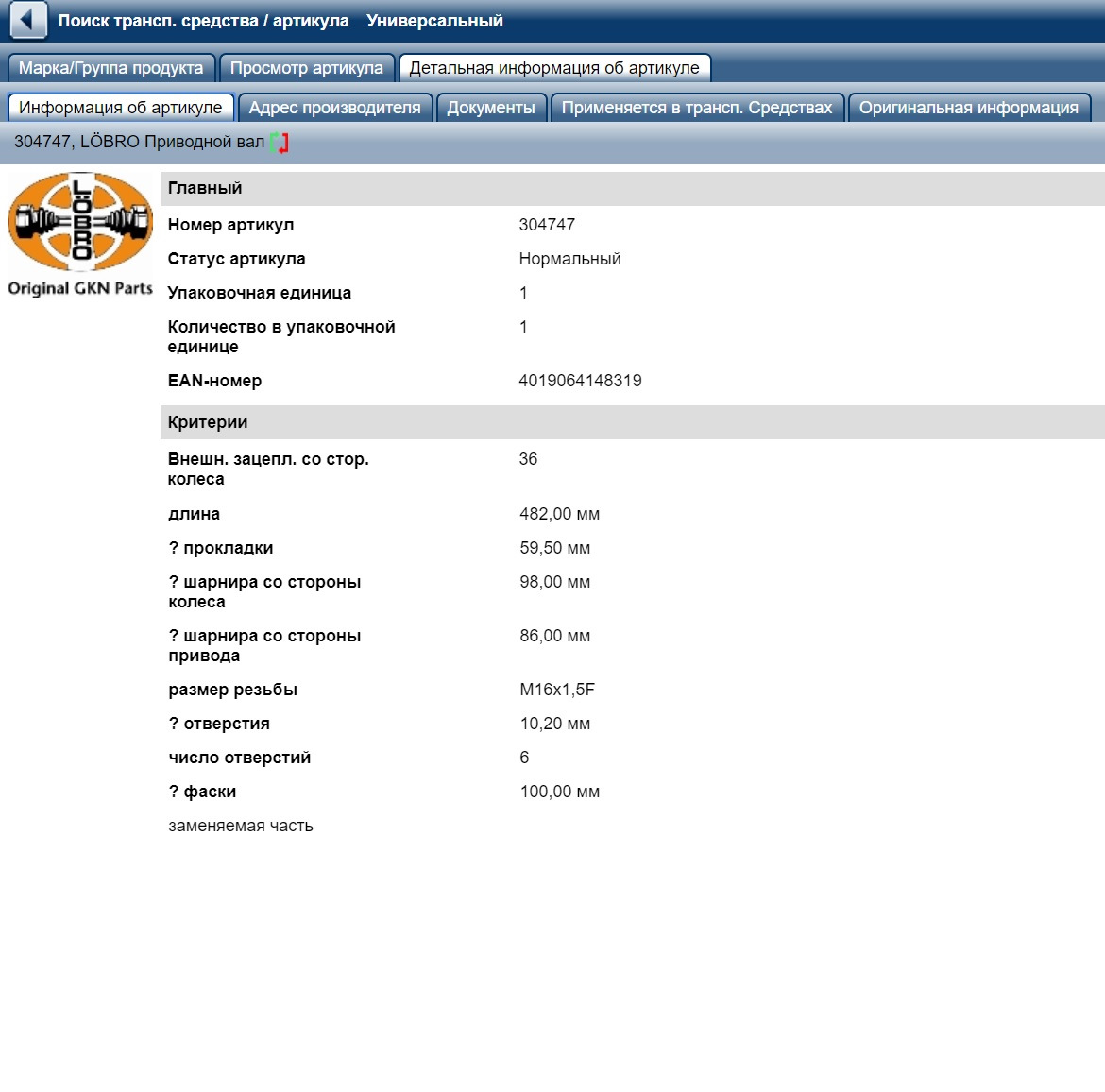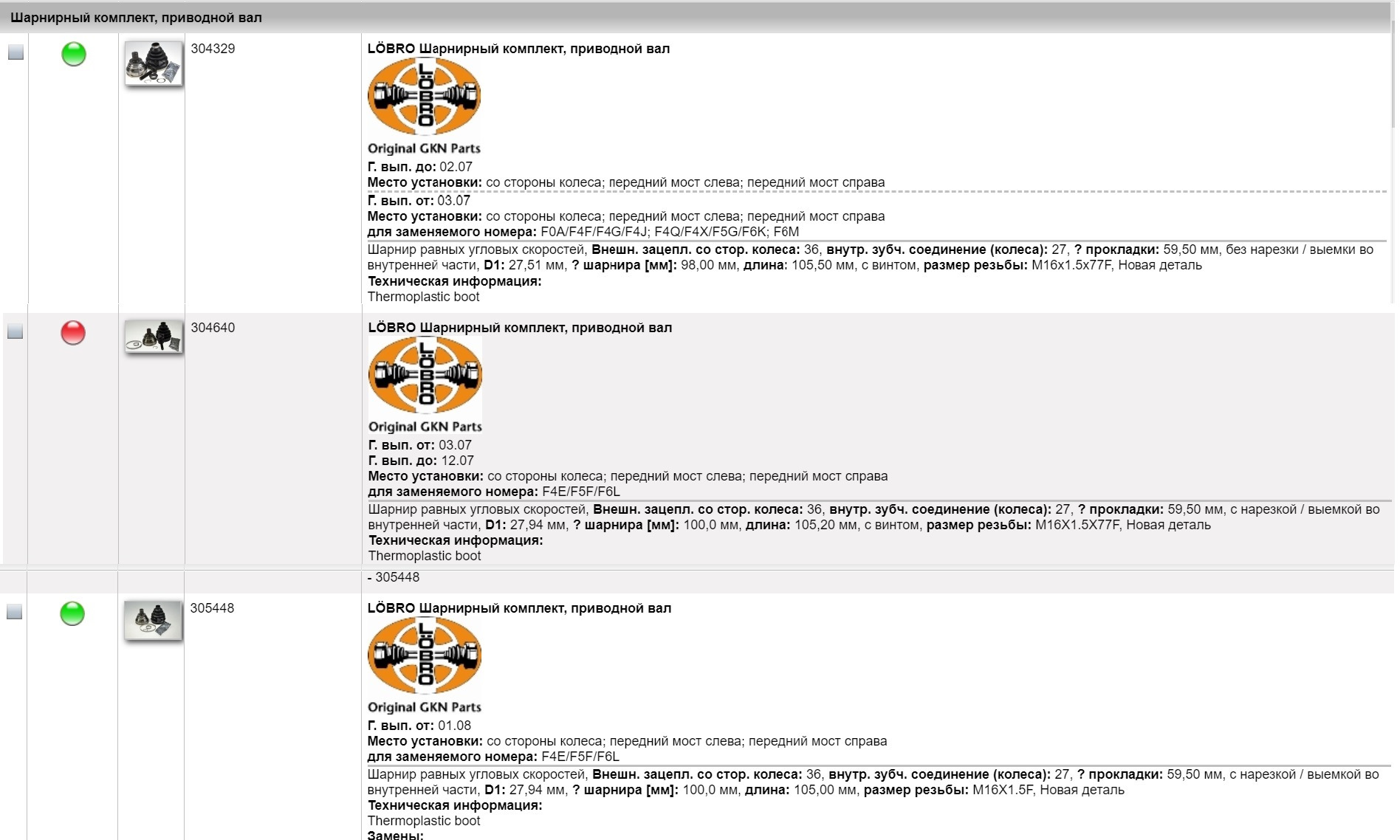 В общем возник вопрос? может у кого есть выход на каталоги GKN, как бы узнать номер ШРУС, который ставился на привод 304747, что бы не лохануться с внутренним посадочным размером и по шлицам.