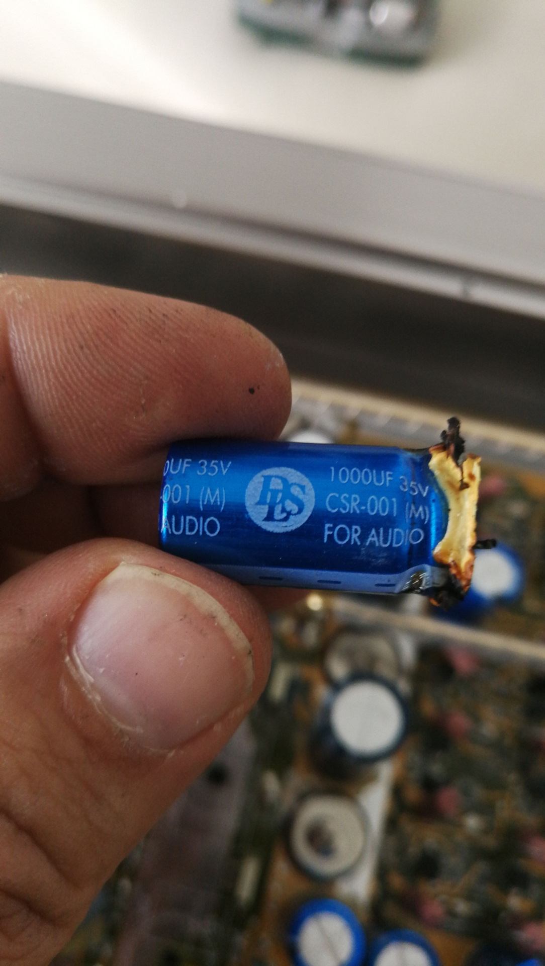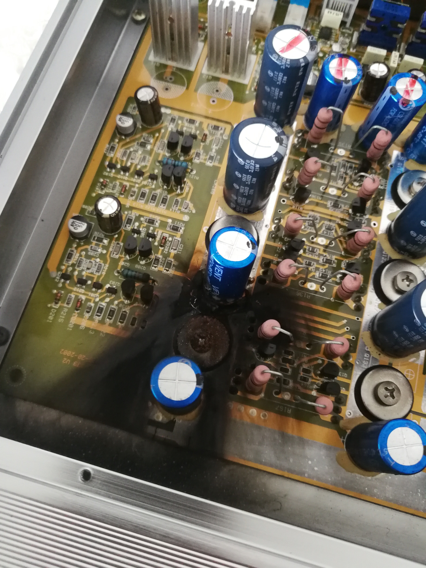 Раз уж кондер сгорел и если это единственная причина, наверное придется менять их все. В общем, если кто имеет опыт ремонта этих усилков и кто может пррконсультировать какие кондеры покупать и поделиться фотографией платы, буду очень признателен.