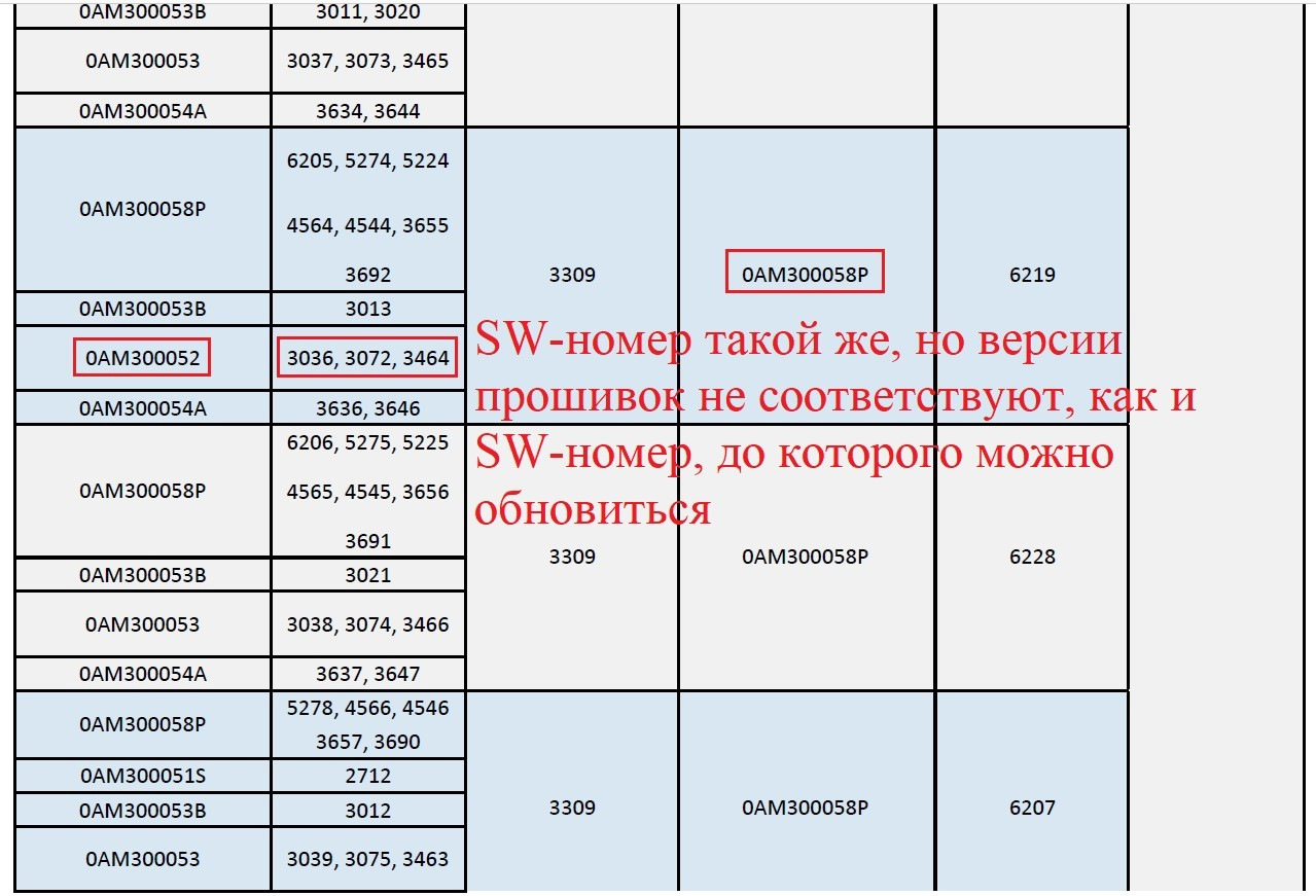 3.1. Определение, подбор и актуальные версии прошивок 0AM (для DQ250 02E тоже полезно)