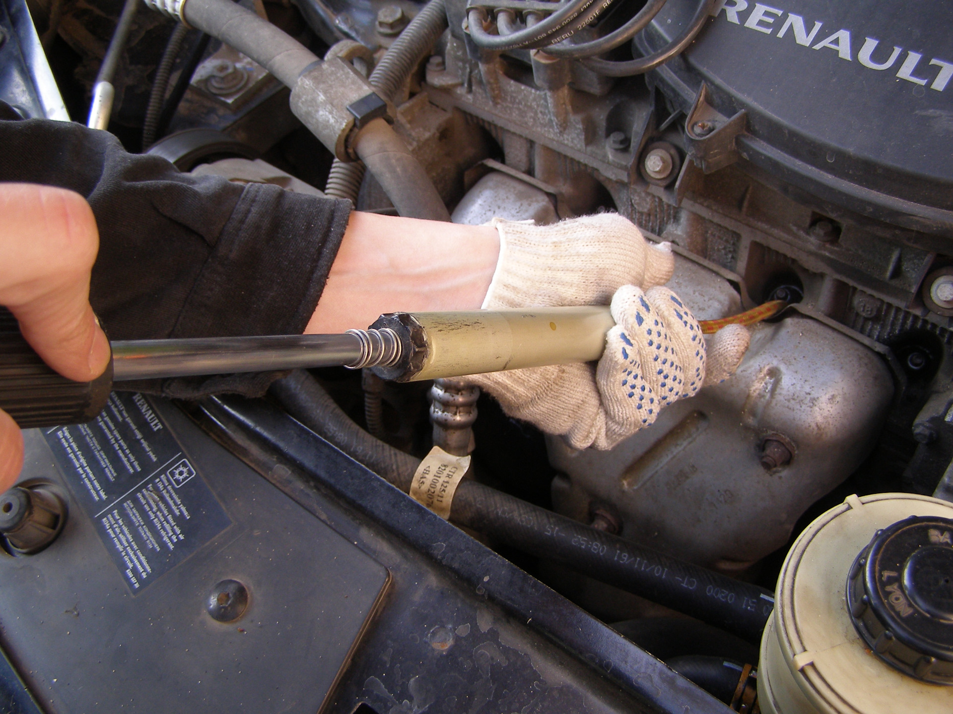 Ну все таки пригодился — попробовал именно головкой на 16 открутить болт крепления подушки верхней двигателя. Ну не открутить, а попробовать усилие в 25-30 Н*м — какое оно будет, и с этим же усилием ( ну примерно конечно ) заворачивал свечи. Старые тоже были закручены примерно так, усилие для отворачивания приложил по ощущениям чуть больше — и вот результат свечи отходили нормально.