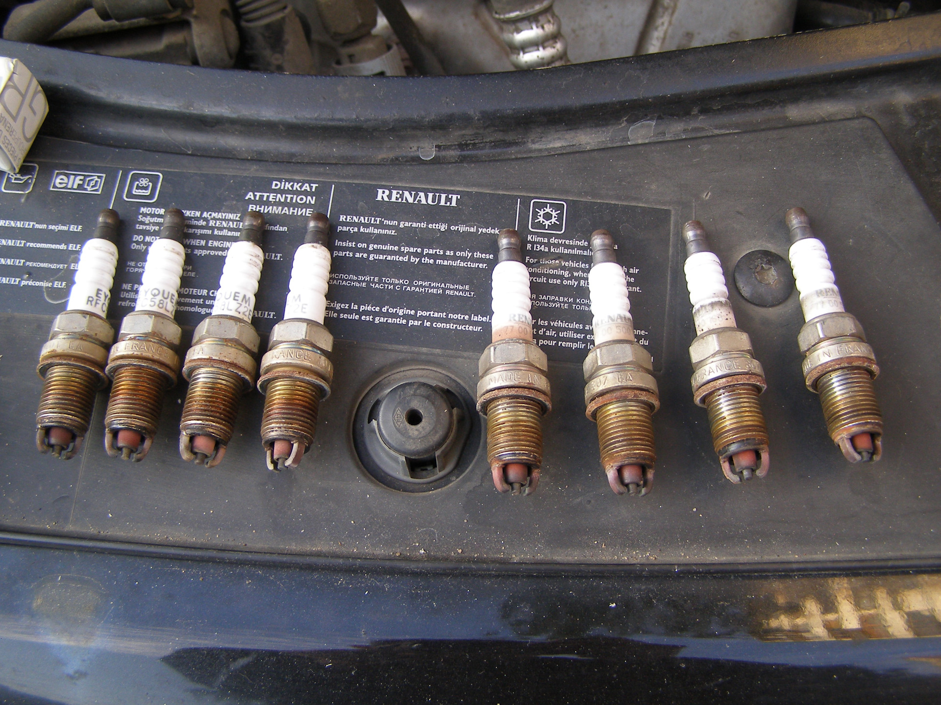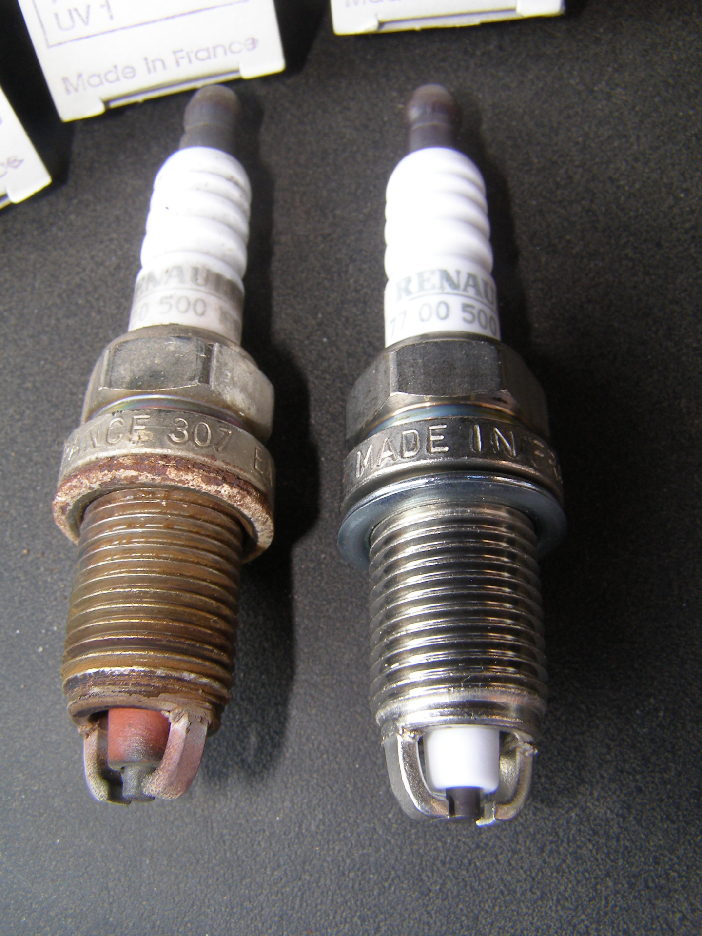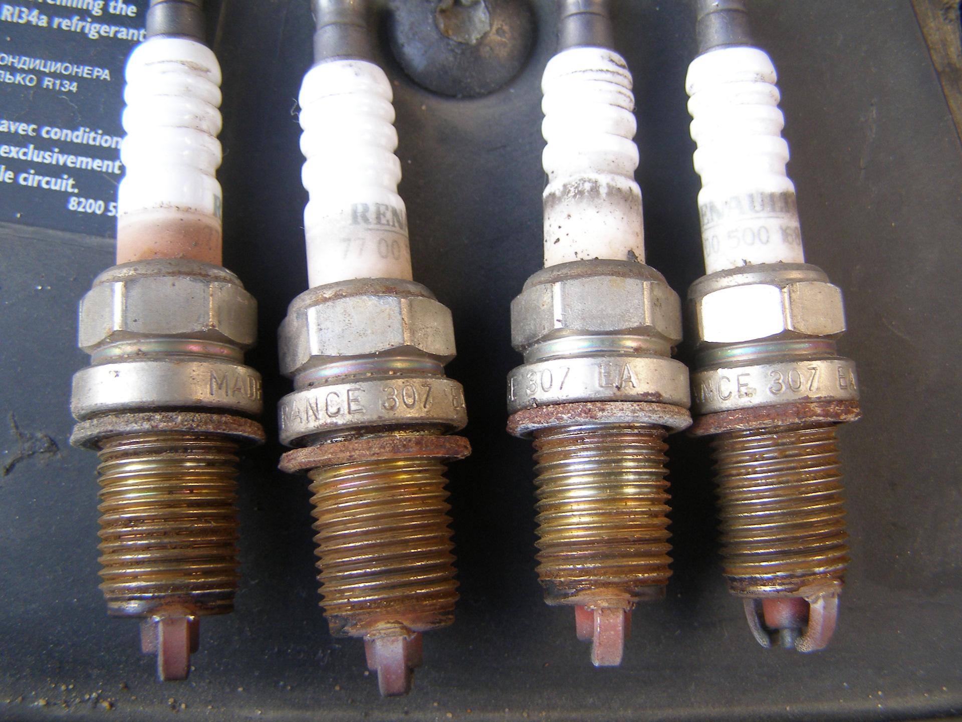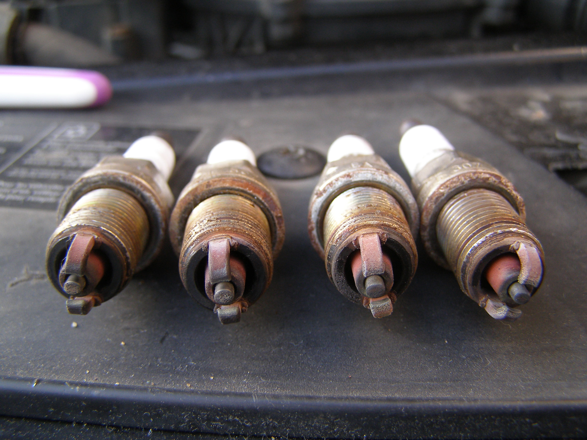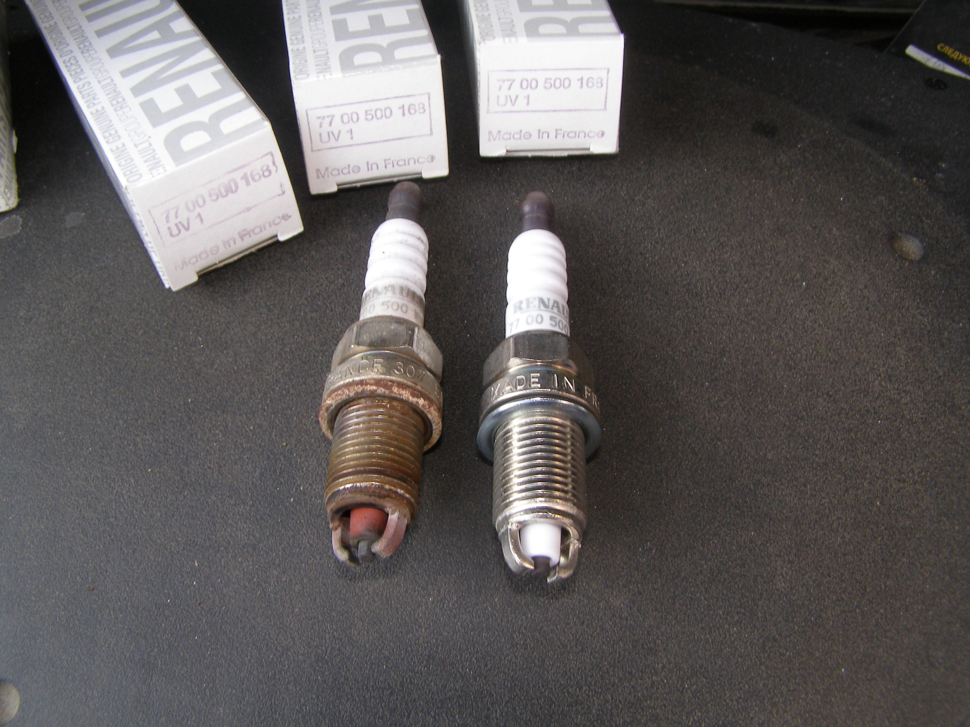 Вспомнил, что в багажнике лежат на всякий случай, свечи от первой замены. Решил сфоткать их вместе.
