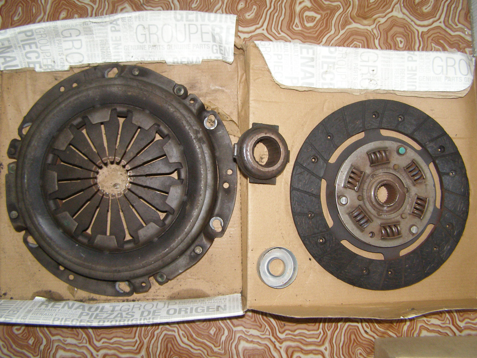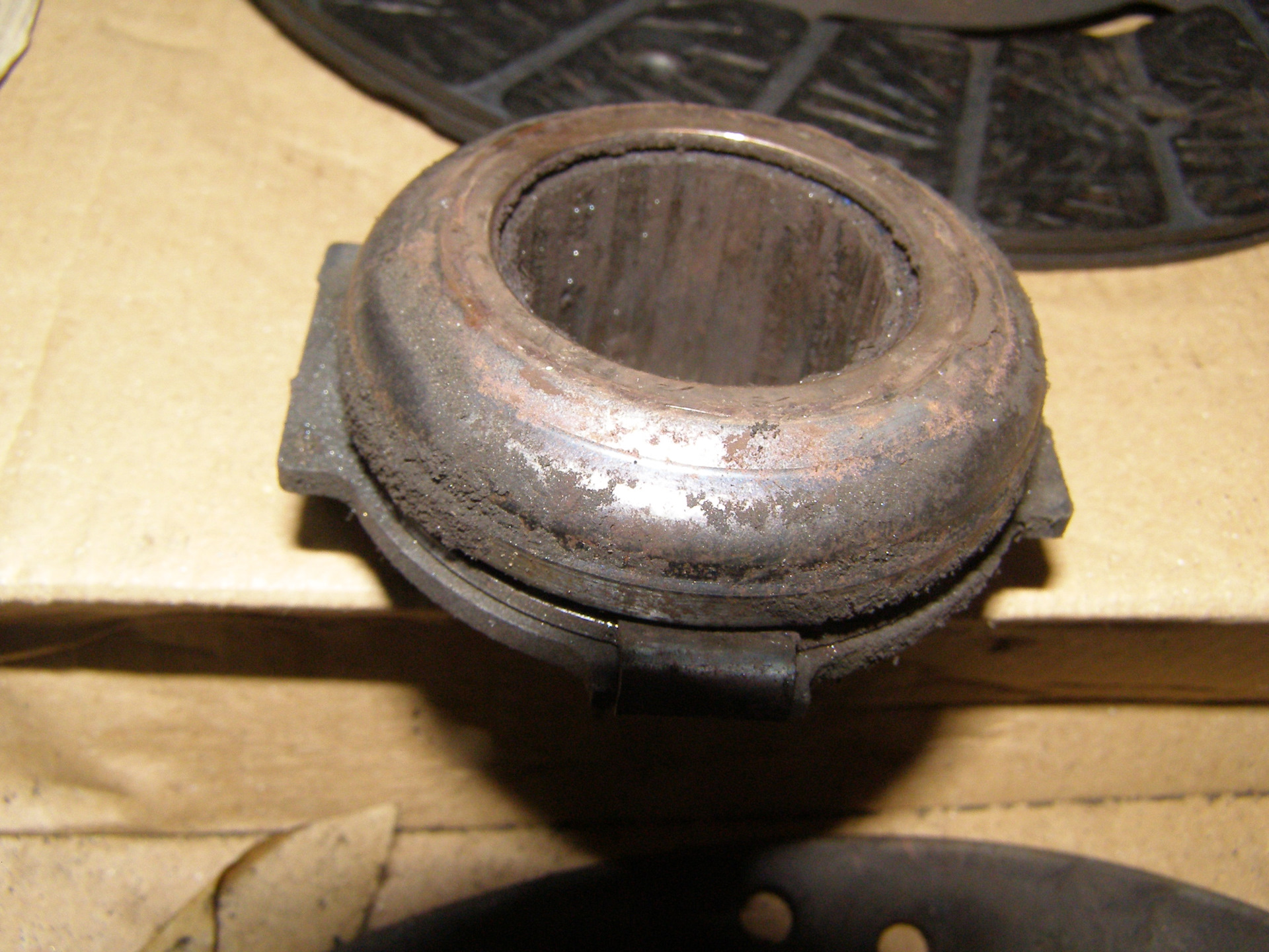 В общем на фотках видно, что еще бы походило. Диск имеет запасец. Выжимной крутится, но где то чуть заедает — надо посмотреть его, может промазать. Оставлю — мож пригодится…
