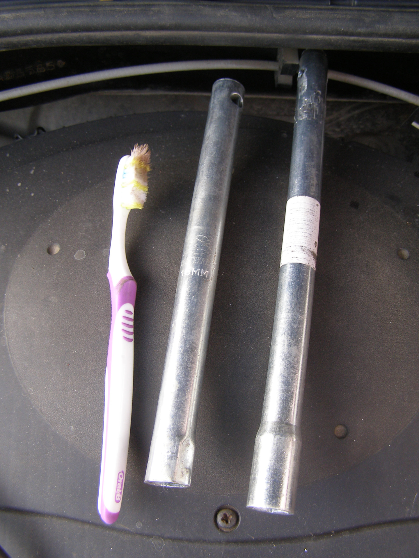 Ну и свечной ключ в двух экземплярах и зубная щетка для удаления песка. Левый ключ был куплен вначале для свифта — помялся. Неудобен, ключ справа удобнее в нем магнит — свеча к нему примагничивается. Единственное НО — нельзя закрутить динамометрическим ключом ( момент 25-30 Н*м ).