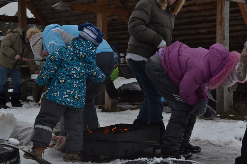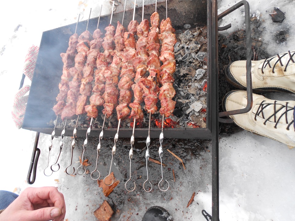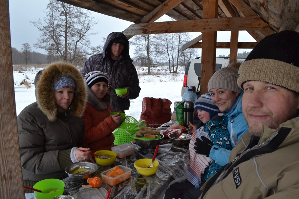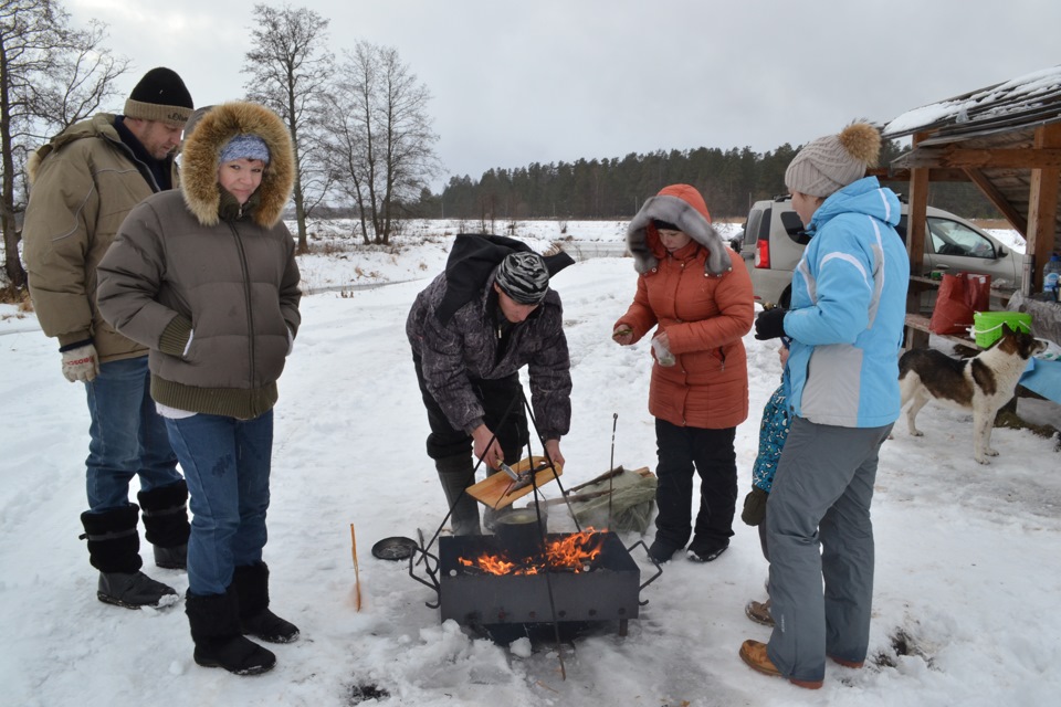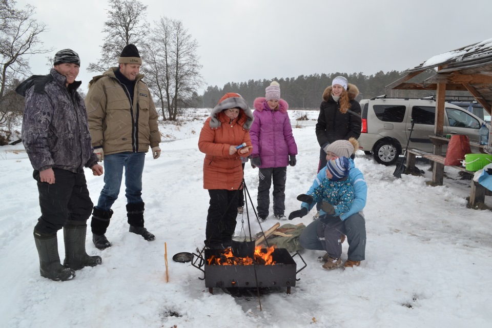 В общем, время провели отлично, поле укатали и вычистили, снеговика слепили, шашлык с ухой приготовили, сырые и довольные поехали домой.