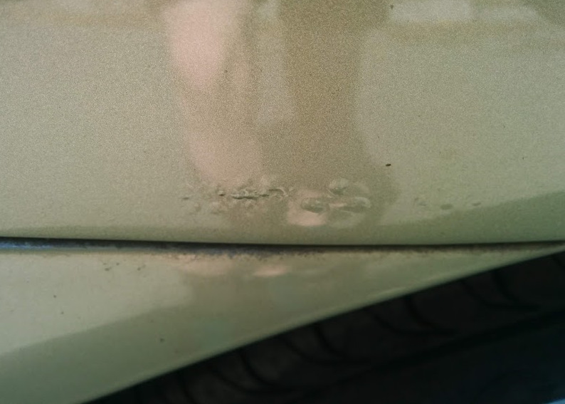 Такая же фигня на левом крыле, но там еще при покупке было повреждение, к-му походу дали проржаветь, а потом покрасили перед продажей. Дальше у меня уже был перекрас, все пороги, арки задувал мовилью, но один жучок явный только хирургически придется исправлять…