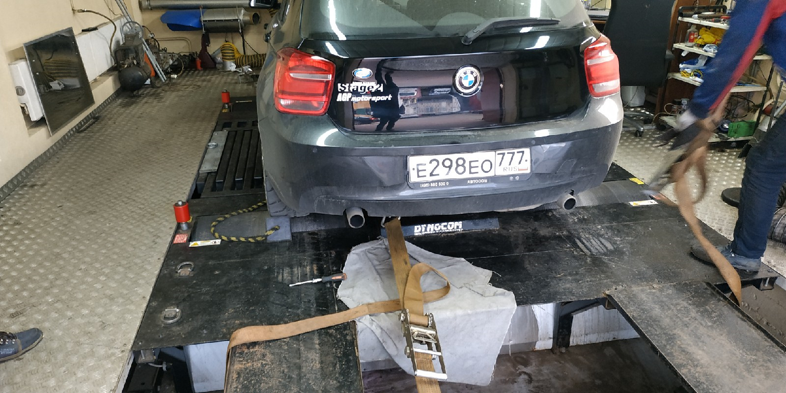 Замеряли две машины как я уже говорил — bmw 116 stage2 — выдала 224 силы и 330 момента, ее меряли первой, в процессе привязывания уже моего проекта к барабанам — мы постоянно обсуждали что вот бы снять 180 — вообще круто было бы, но и 140 тоже не расстроит — в итоге замерщик же тоже нас слушал, вылез и говорит — "б****, еще одна bmw что ли?", подошли посмотрели — "а я и думаю н**** шустро барабаны раскрутила, какие же это 140, это еще одна bmw у вас ребята" — поржали))