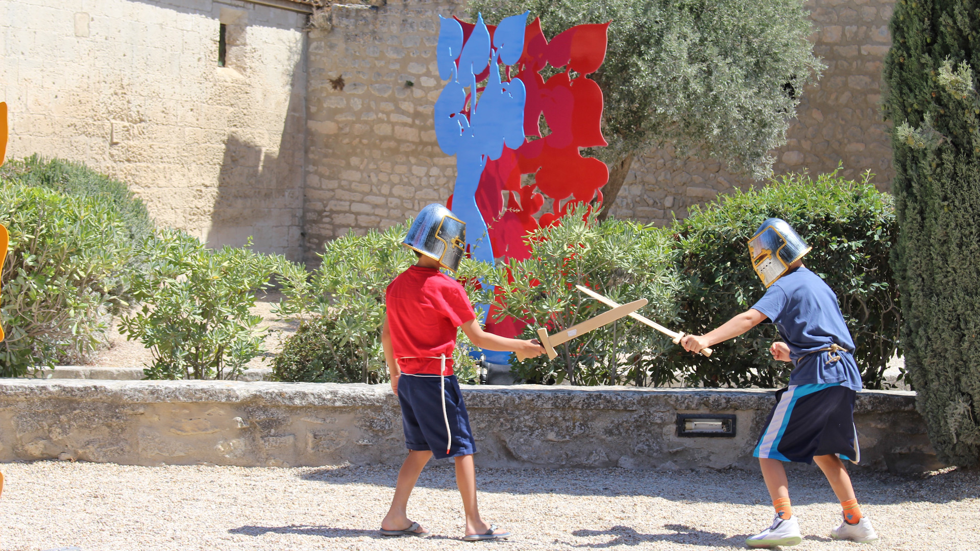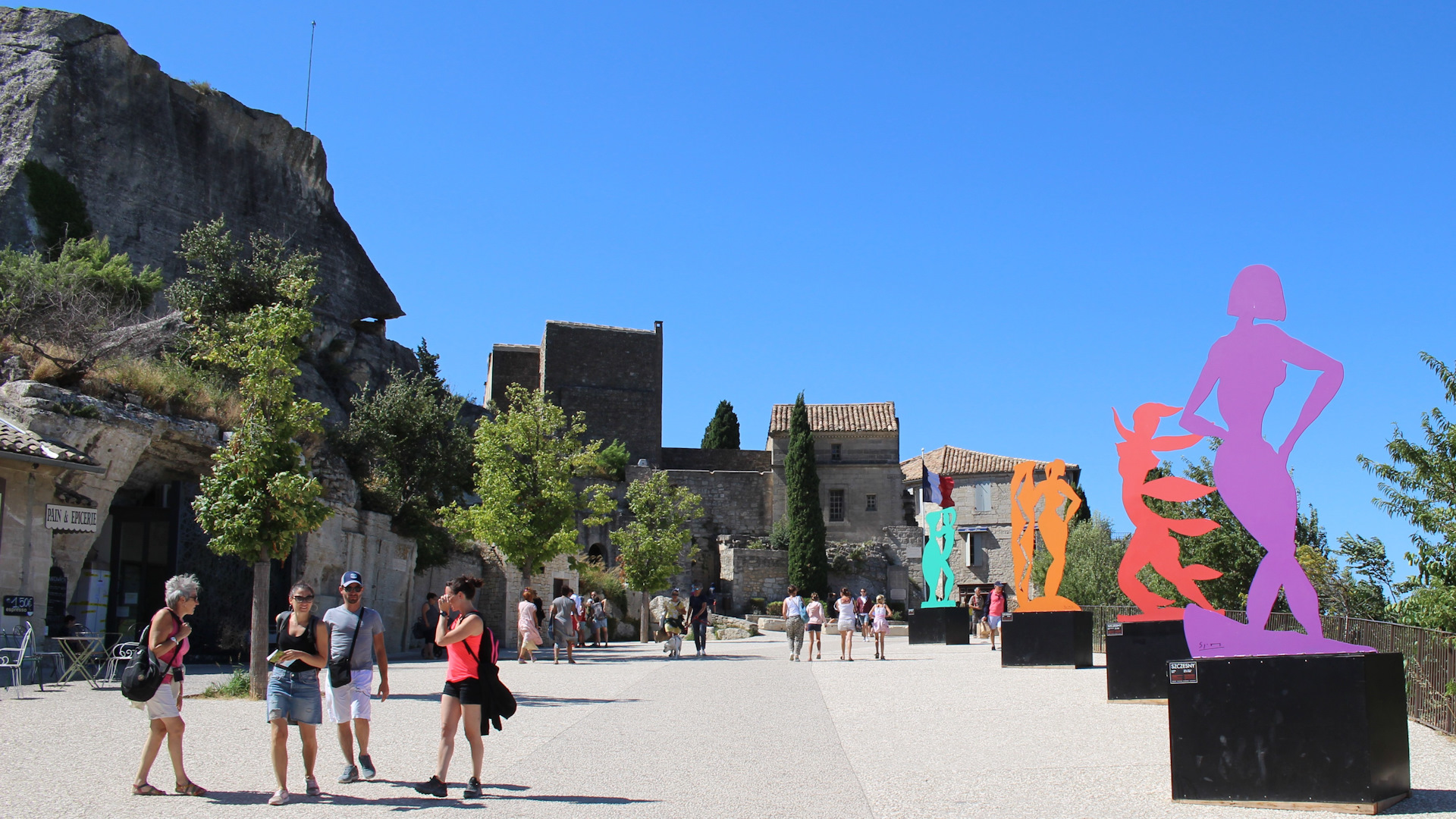 Немного физкультуры после просмотра проекций картин.Красочный вход в деревню. Туристов довольно много. Удивительно, но русскую речь я там не услышал.Самый дешевый вариант пообедать – это шаурма/кебаб/гамбургер, который все равно стоит примерно в два раза дороже чем в городе. Есть возможность закупиться провансальскими сувенирами, среди которых тон задают, конечно же, продукты из лаванды.В жаркий день можно охладиться с помощью вкусного мороженого. А жарких дней тут хватает. К счастью, во время нашего визита дул сильный ветер, с порывами до 70 кмч, так что было постоянное ощущение что ты находишься под вентилятором.Вид с края обрыва в сторону Лазурного берега.Впереди также виднеются подъемные краны порта Фос-сюр-Мер (Fos-sur-Mer) рядом с Марселем.Взгляд назад на деревню. Столько домов, людей, а где они все – не видно. Больше напоминает развалины древней крепости. Чем Ле-Бо-де-Прованс по сути и является.Дуэль малолетних англоязычных рыцарей :)На улочках Ле-Бо-де-Прованс. Среднее количество туристов в год – полтора миллиона человек…Очень приятно после долгой прогулки обнаружить, что машина до сих пор находится в тени. ;) А также то, что на ней нет следов смолы, вмятин от упавших шишек, птичьего помета и т.п. . О чем только не думаешь летом когда паркуешь машину :)