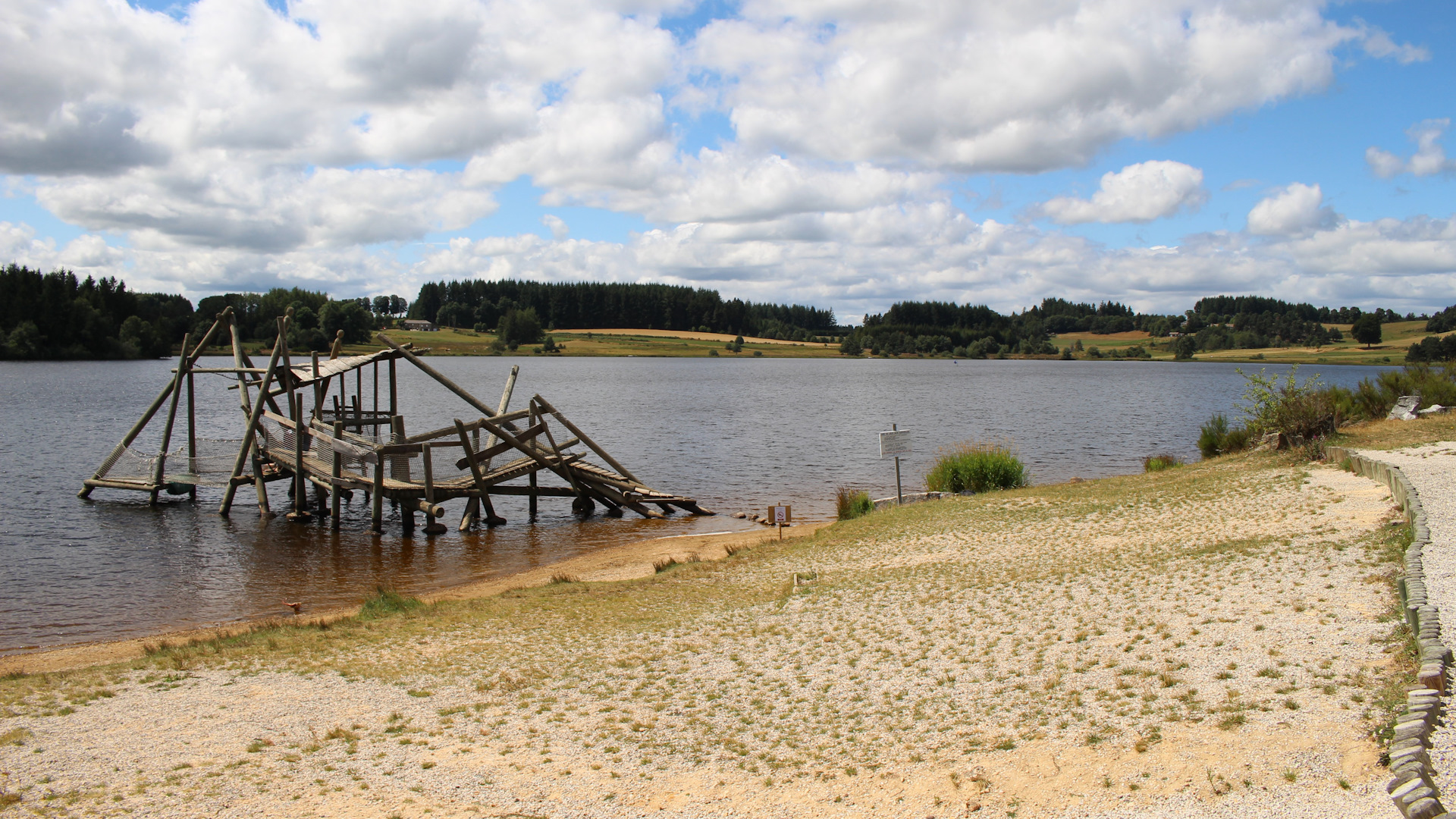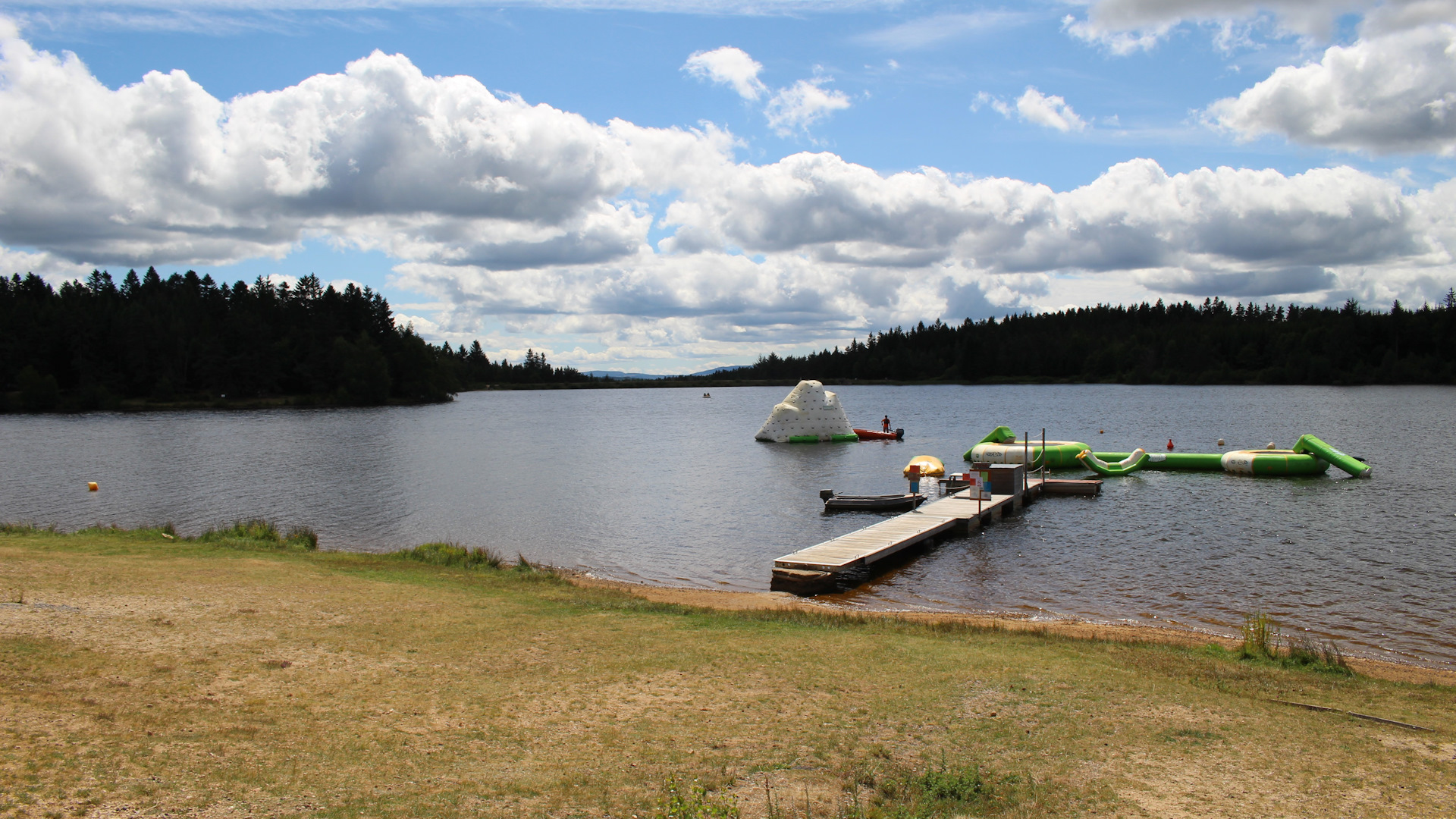 В семи километрах от деревни на север располагается симпатичное горное озеро Девесе (lac de Devesset). Тут же есть кемпинг, небольшое кафе, детская площадка и разного рода предметы для активного отдыха на воде. Подъезд к озеру огорожен шлагбаумом. Въезд — €5. Но оно, конечно, того стоит. Я, правда, не знаю что за причина, но надпись на въезде гласила, что купание в озере запрещено с 14 августа. А мы там были 15-го, когда над пляжем уже реял красный флаг. Ну да ладно, не сказать чтоб было очень жарко. Кстати, в кафе на берегу работала официанткой девочка из Украины. Как ее сюда занесло? Такая глухомань :)
