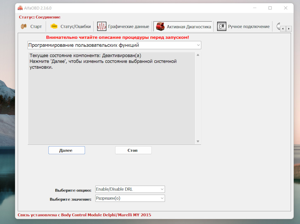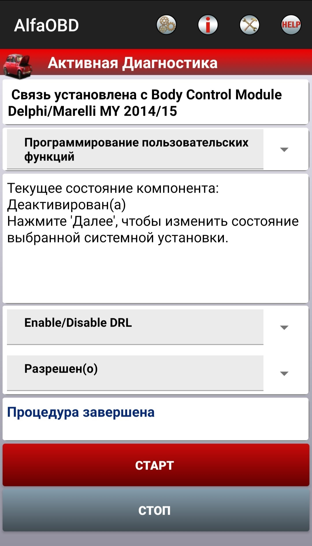 После сообщения «Процедура завершена» вытащил ключ из зажигания, заблокировал машину, разблокировал, вставил ключ в замок зажигания и в итоге: