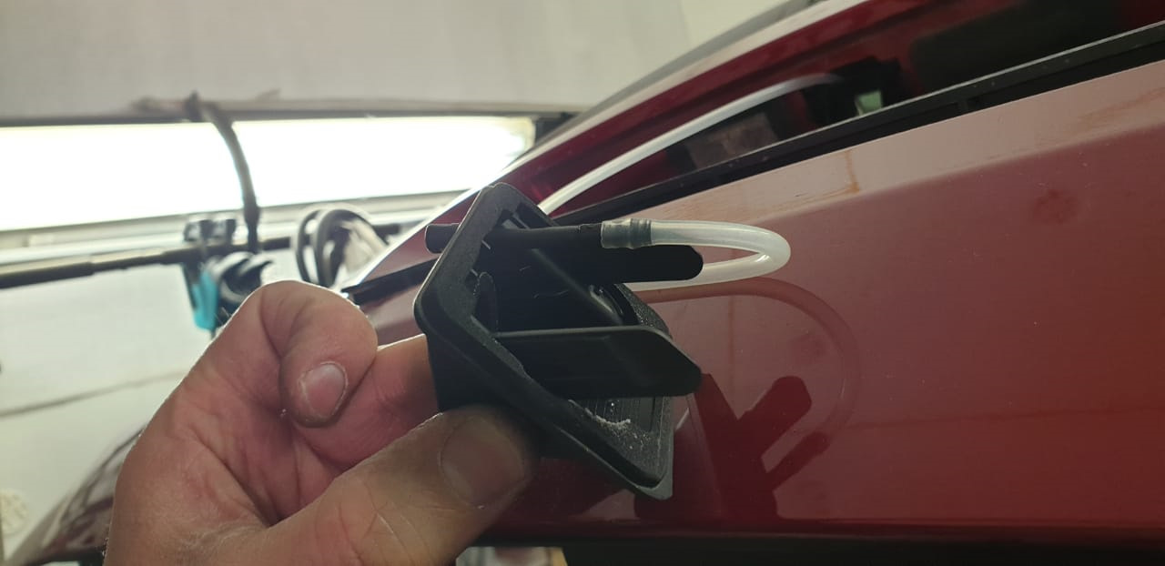 Всё очень аккуратно и эстетично. Оба омывателя работают вместе с подачей жидкости на задний стеклоочиститель.