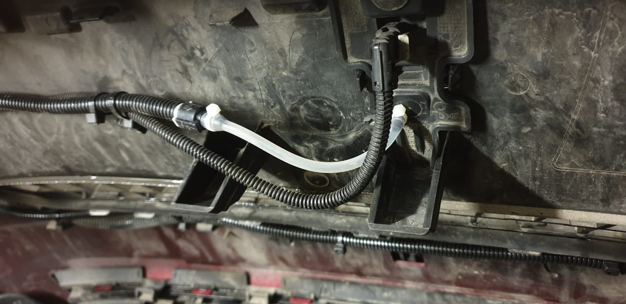 С передним всё сложнее, но ту же форсунку удалось установить прямо на решетку.