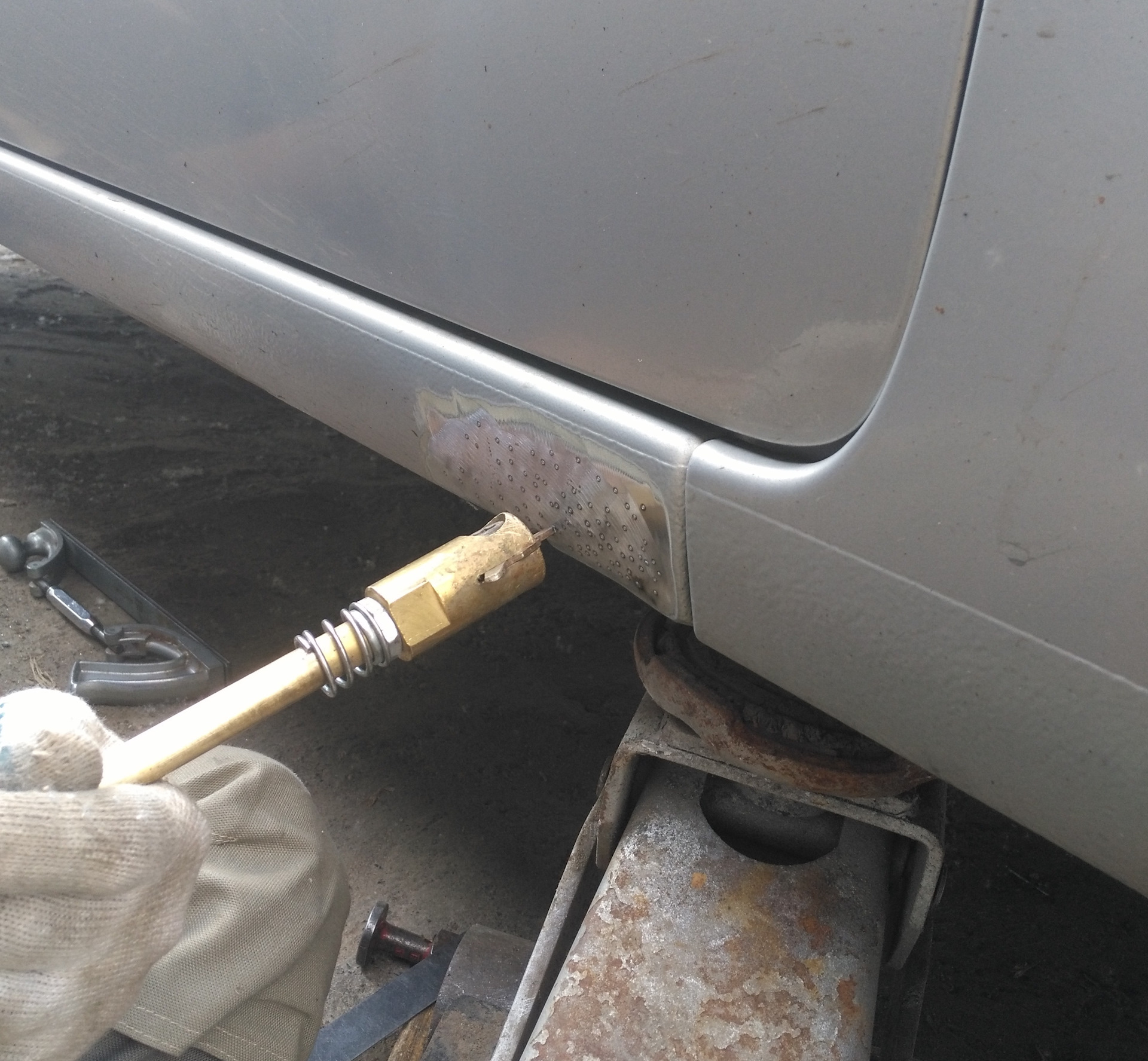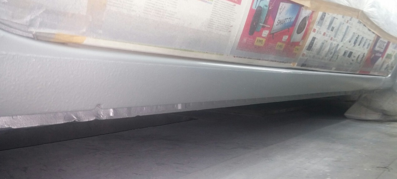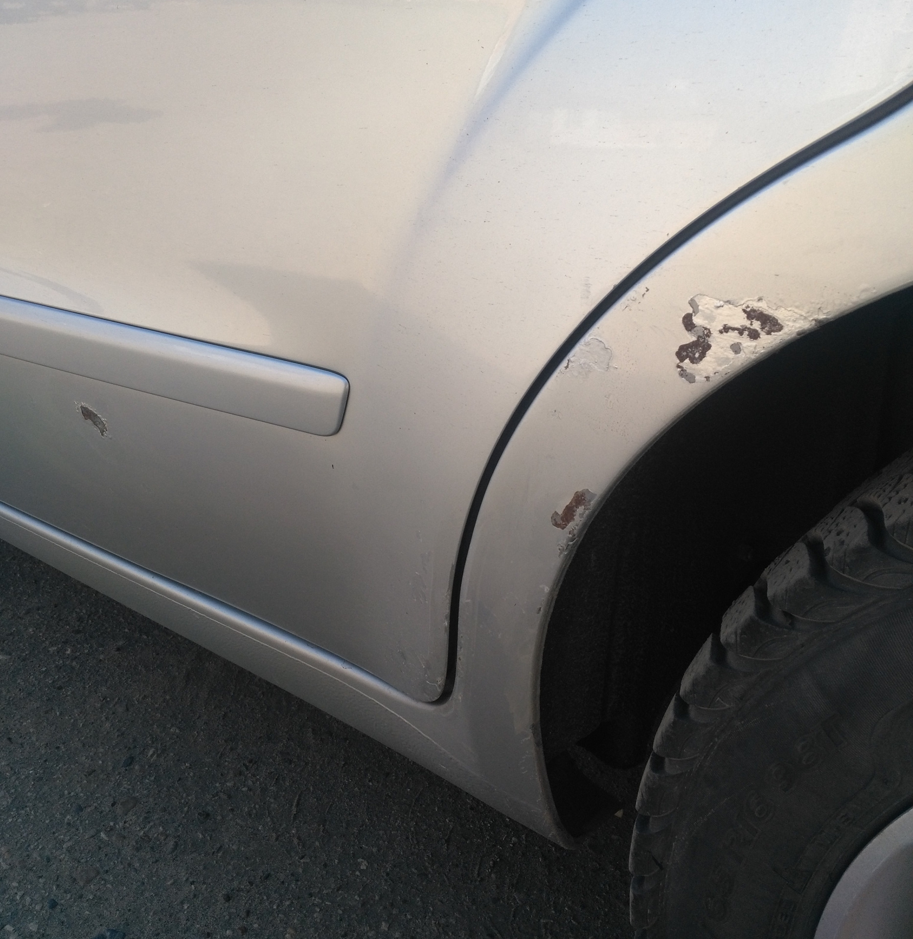 Правый порог был немного замят прошлым хозяином, в двух местах. Практически не заметно было, если не заглядывать снизу. В местах замятия начала отслаиваться краска и защитная обработка порогов, да и на арках и дверях появились многочисленные сколы. Собравшись с мыслями и финансами решил все это исправить!