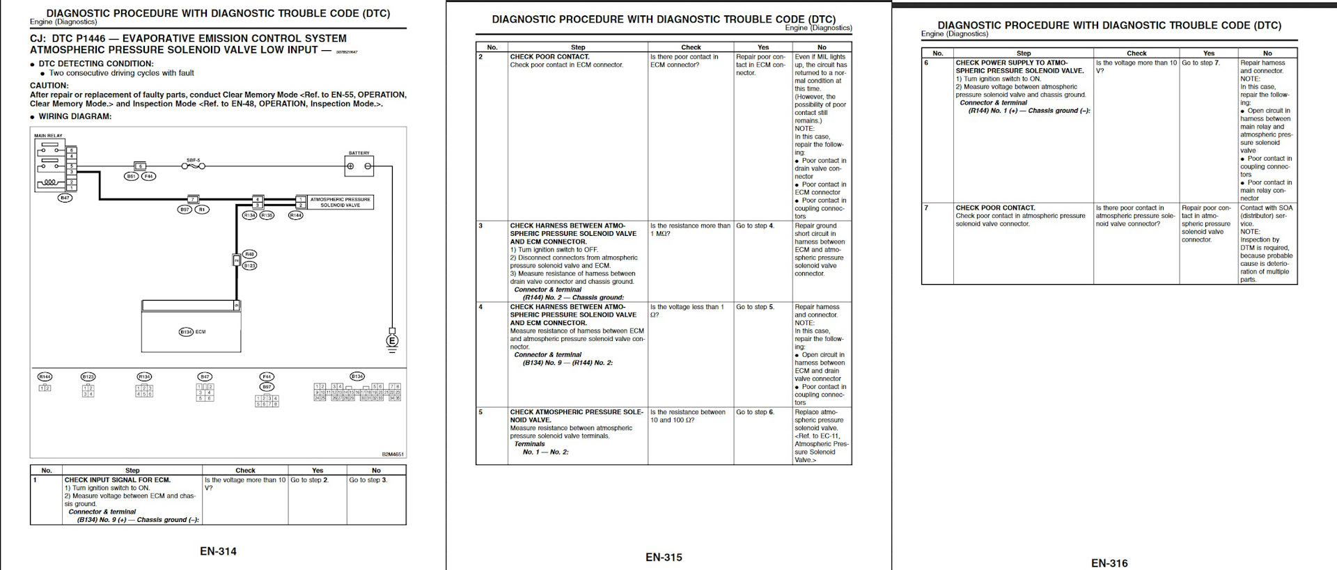 DTC P1446 EVAPORATIVE EMISSION CONTROL SYSTEMATMOSPHERIC PRESSURE SOLENOID VALVE LOW INPUT