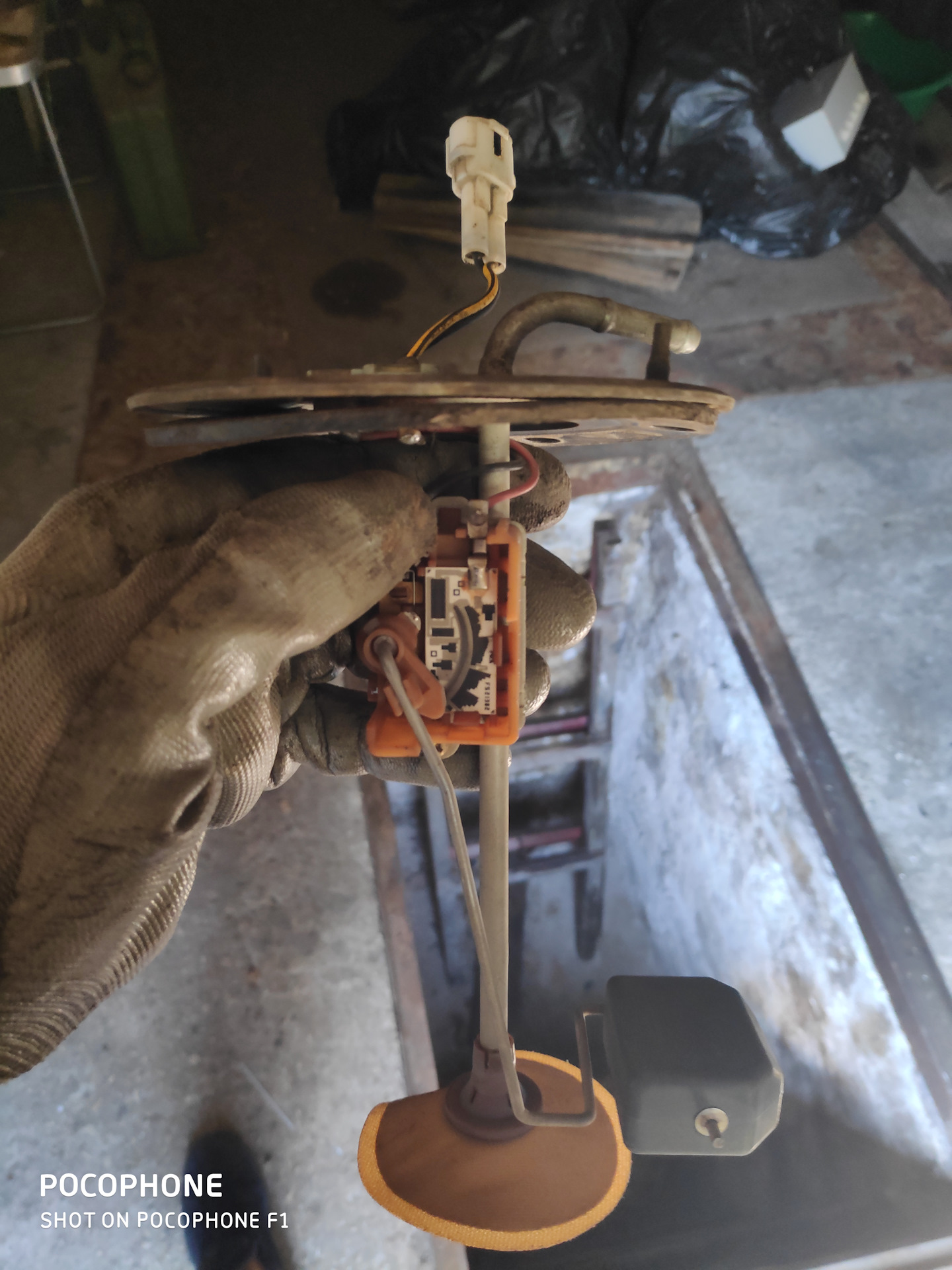 может он саморез закрутил))) сделай проще: откинь фишки от поплавков и панели приоров, включи зажигание и померий напряжение на сигнальном проводе у панели приборов. Если на нем есть напряжение, то само собой провод под замену