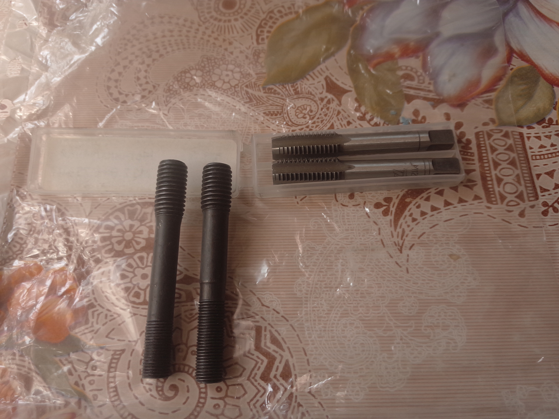 Ремонтные шпильки немного отличаются, куплено было две штуки, по 150 рублей каждая, так на одной резьба М12 была длинная, а на второй короткая, с мелкой резьбой ситуация обратно пропорциональная.