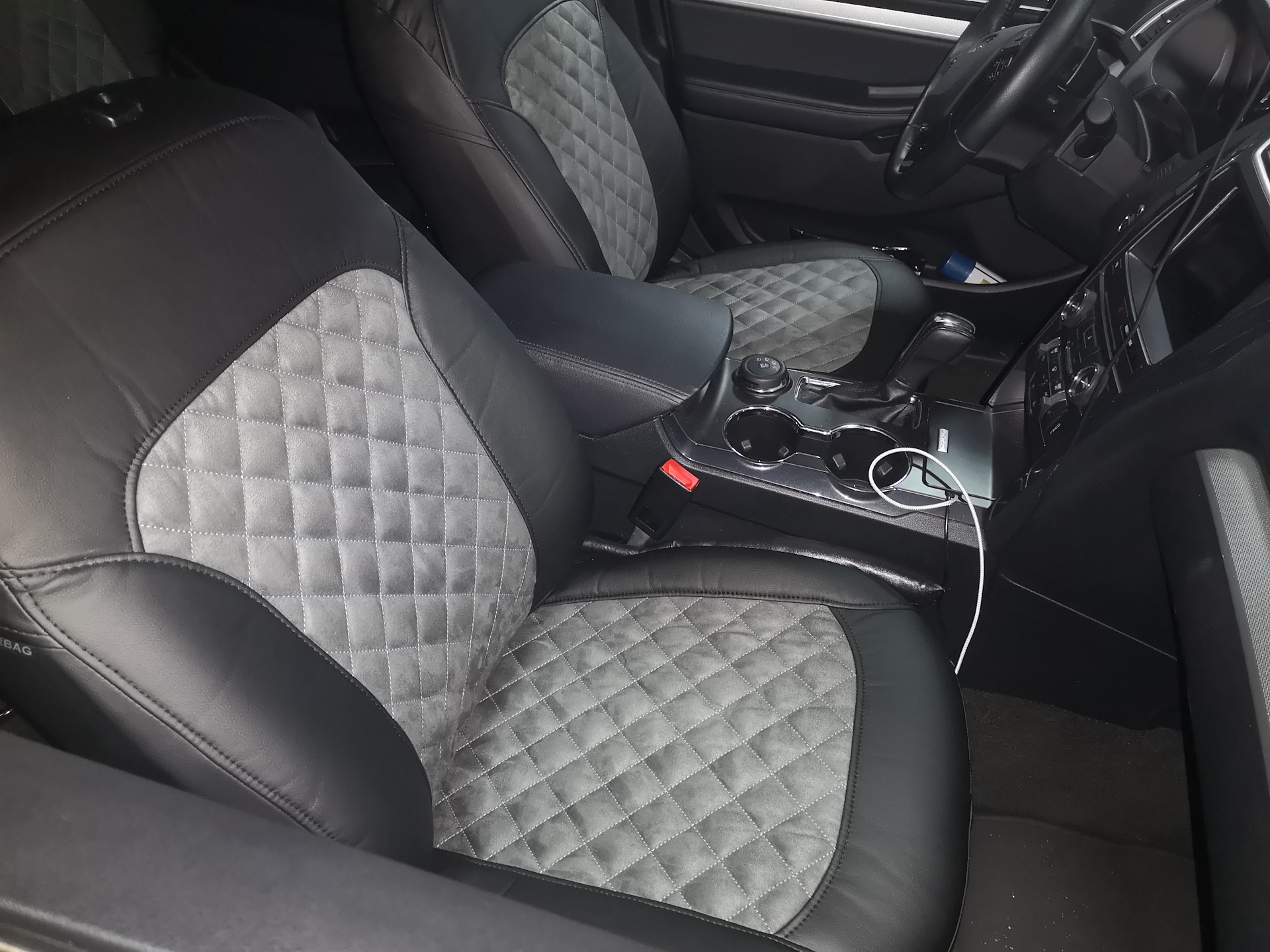 Так и есть, материал кожзам и алькантара, перешить только сиденья без дверных карт.