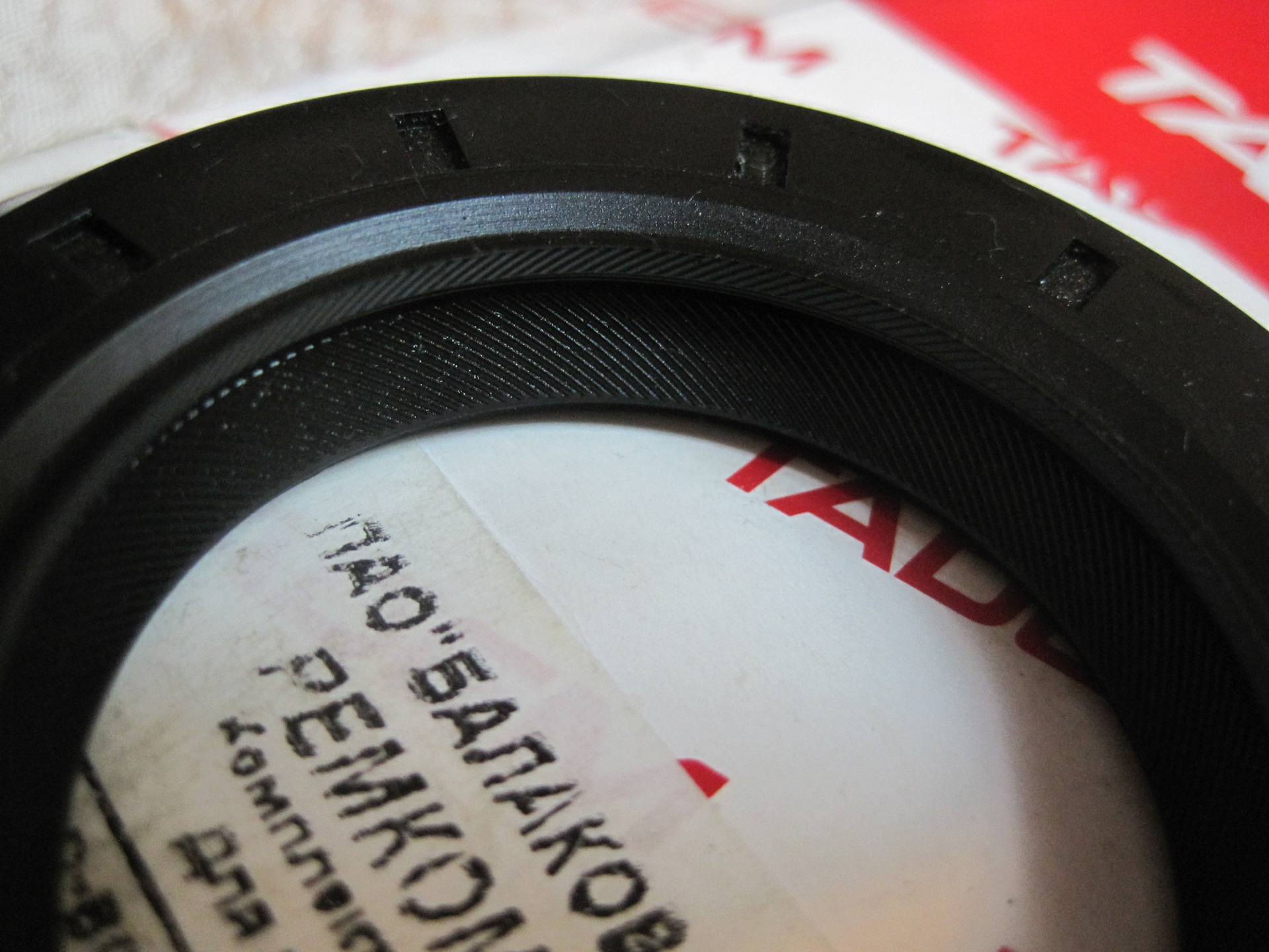 Дома рассмотрел снятый заводской сальник. Он оказался не БРТшный (!), а производства АО "Резинотехника". На сальнике есть соответствующий оттиск в виде стилизованных букв РТ, наложенных друг на друга. Не знаю, может вы что рассмотрите, но я не заметил видимого износа рабочей кромки.