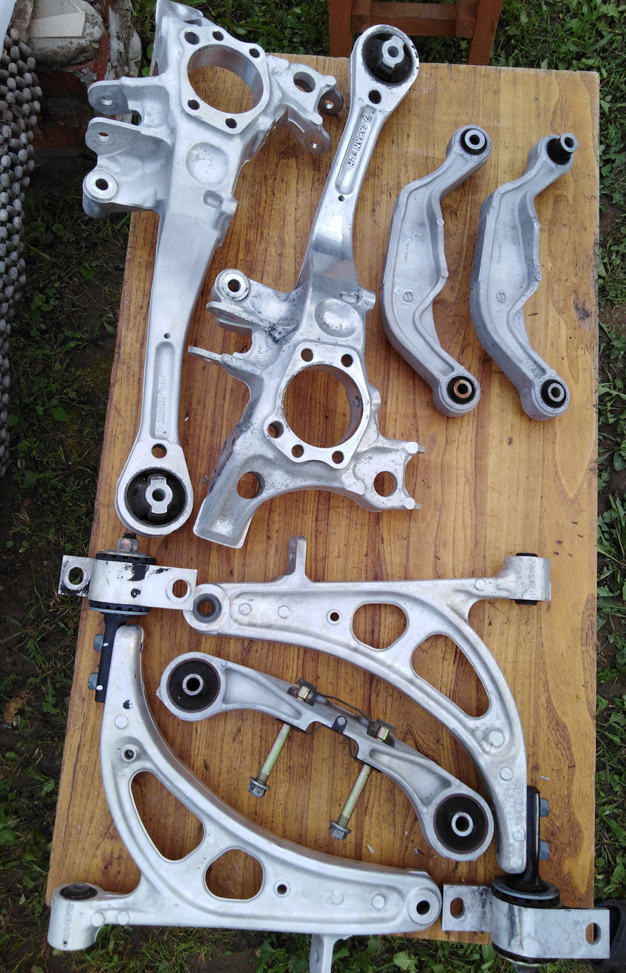 1.Комплект аллюминевых рычагов(верхний и нижний поперечный, продольный) с кузова BL. Встают болт-он. Нужно переделать только отверствие под наш датчик abs. Болты ступицы задних рычагов нужны родные. С чугунных рычагов не подойдут, они короче.Так же передние рычаги и балка заднего редуктора. За все примерно 5.000₽