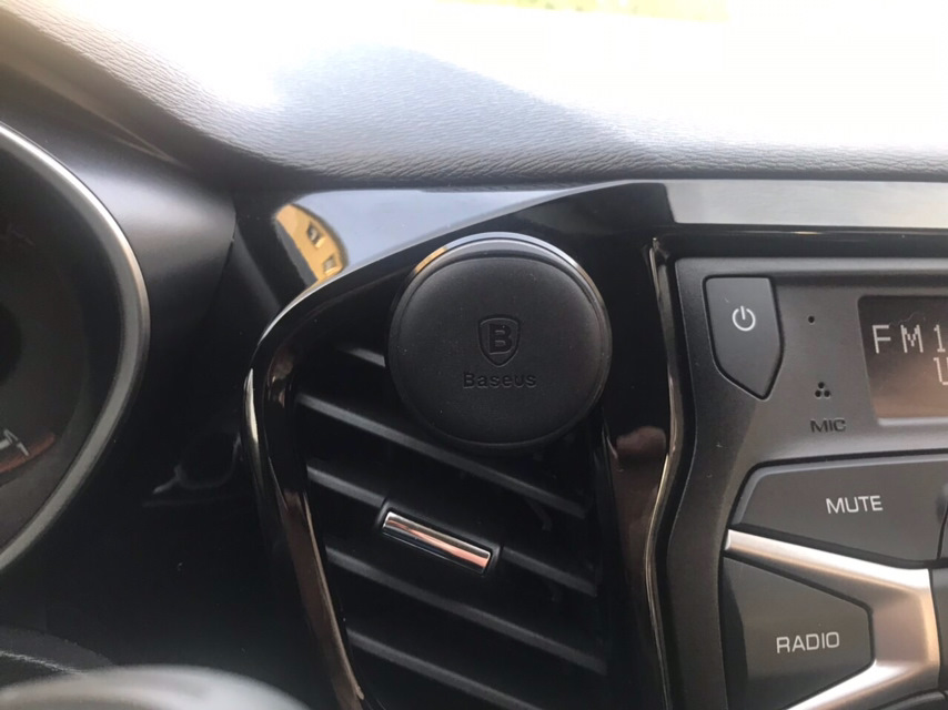 Выбрал магнитный держатель для телефона в вентиляционную решетку (присоску на стекло либо клеить на торпедо не хотел принципиально). Боялся только, чтобы крепление не натирало краску решётки.