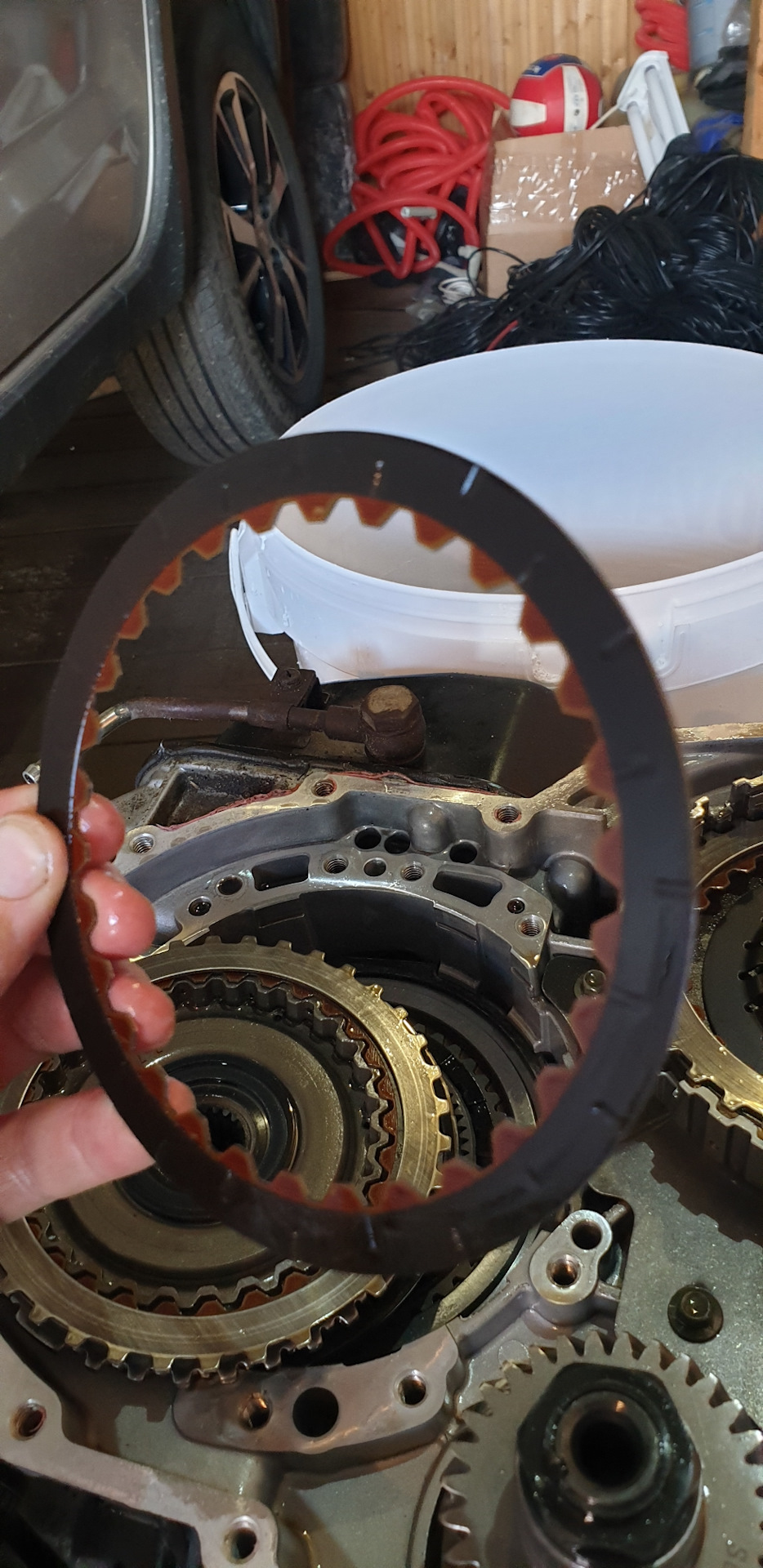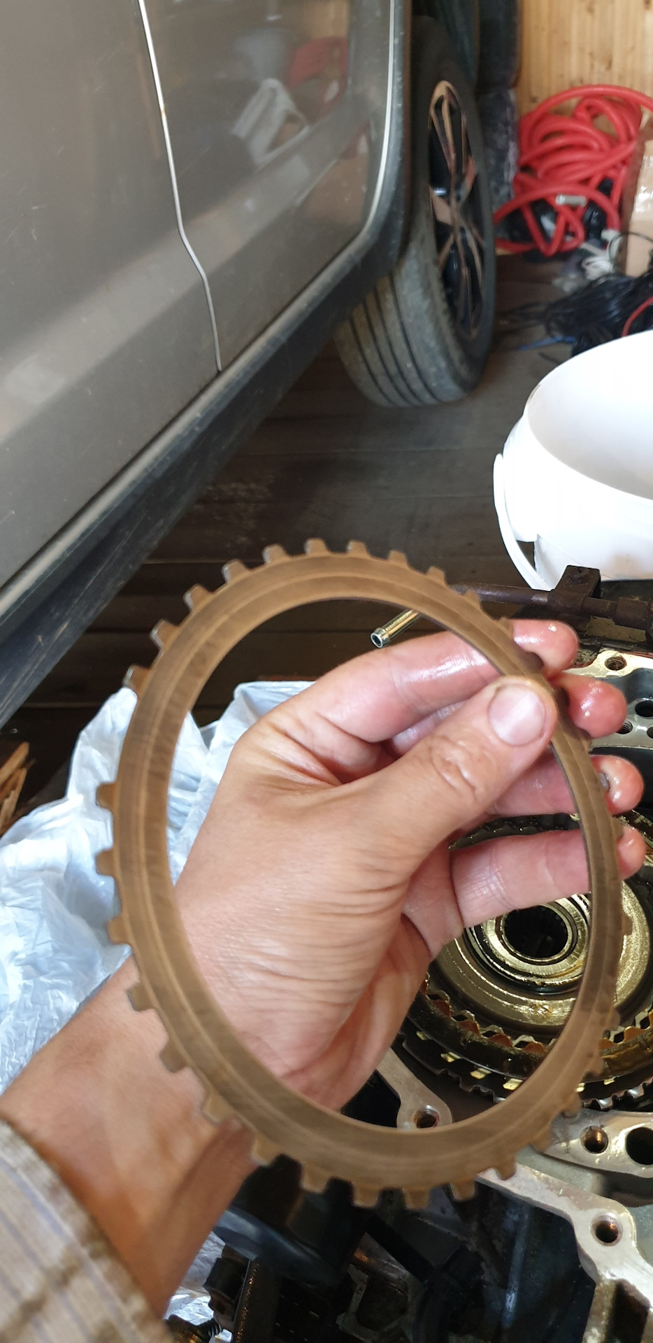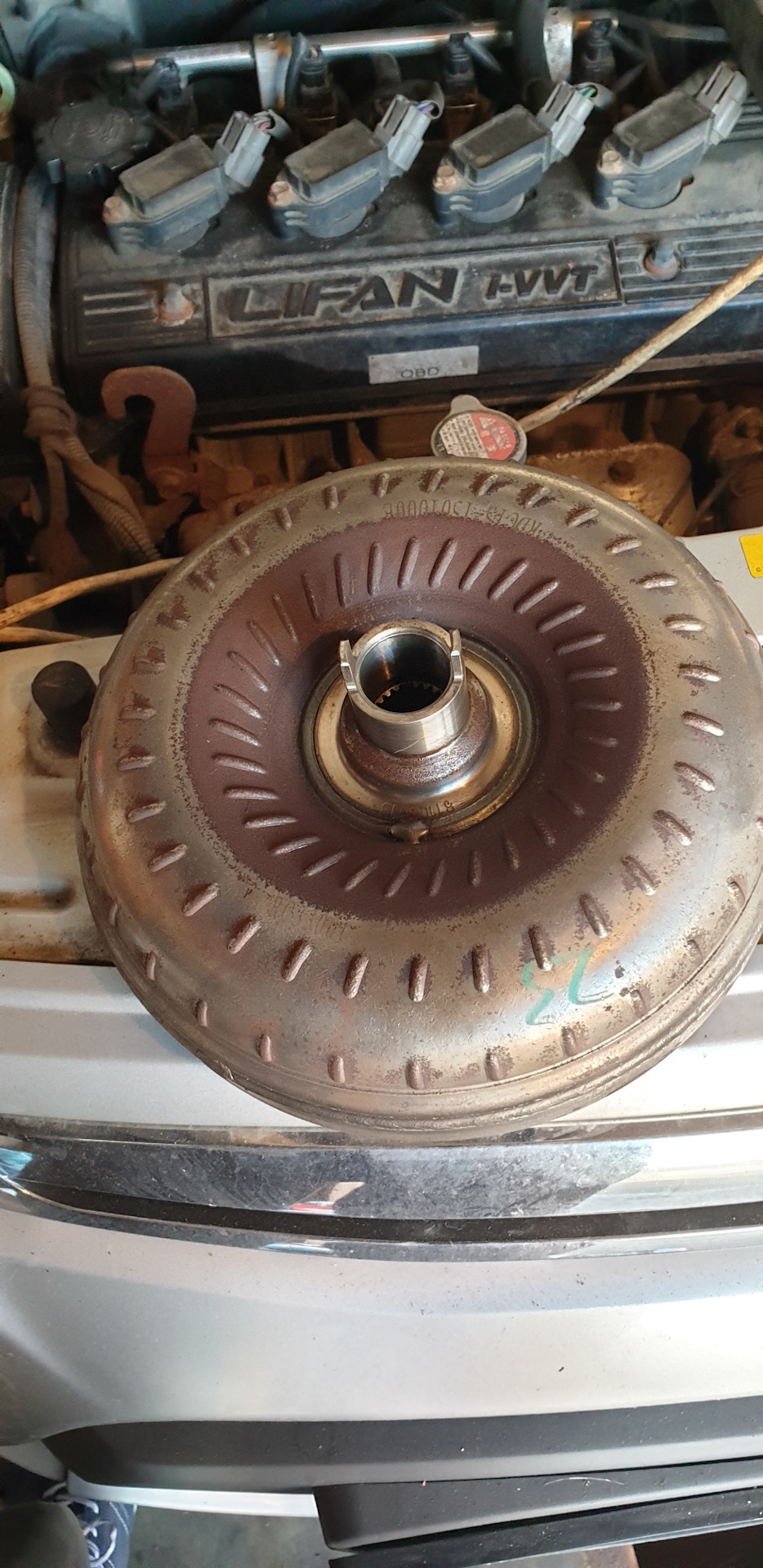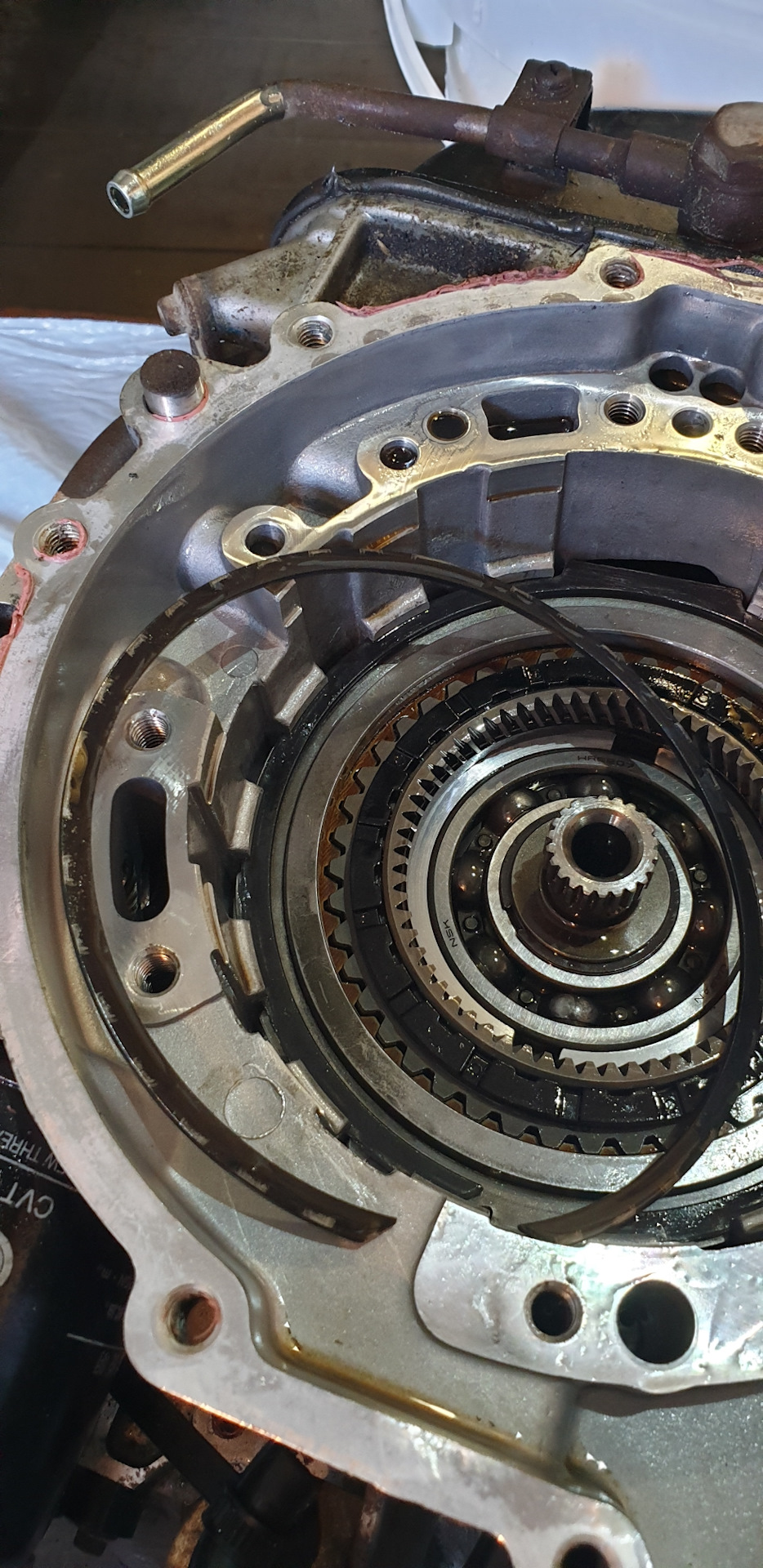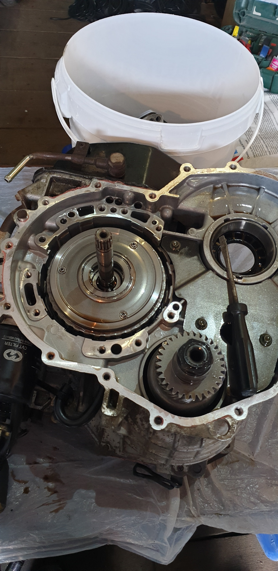 Всем доброго вечера будет много фоток и немного текста. На 63 000 тысячах Стал замечать что подмигивает лампочка ошибки по коробке. Поехал к одним спецам. Не смогли прочитать. Официальный сервис все в отпуске. Это случилось 2. 09.2019. Поехал к другим тачку посмотрели масло понюхали сказали нужно разбирать и смотреть компом тоже не смогли прочитать. На обратной дороге машина просто перестала ехать двигатель крутит передача включается а тачка не вперед не назад. Вызвал эвакуатор отвёз в гараж, еле втолкнули. Решил сам разбирать. Перед тем как ехать на сервис еще смотрел фишку на коробке и обнаружил окисленый контакт прозвонив тестером обнаружил обрыв. По схеме салинойд переднего хода, но она же ехала раньше. Съездил в Белчип подобрал контакт поменял проехался вроде лучше стало. Утром проехал 5 км, походу пока масло горячее едет, а как прогреется так такое ощущение что буксует так оно и есть газ давишь она ревёт и медленно разгоняется. Итог сам снял разобрал и обнаружил что оторвался первичный вал от корзины с фрикционами. Нашёл через посредника в Минске из Новороссийска за 2 недели привезли 320 $ . КОМУ НУЖЕН ТЕЛЕФОН ПИШИТЕ. Итог собрал залил новое масло поменял все фильтры ПОЕХАЛА КАК НОВАЯ. Запчасть новая 2019 года должна быть вроде как усиленная. Фрикционы не менял, А надо что скажите? Наружний фильтр на коробку подошёл от субару. Масло зелёное idemichu cvt