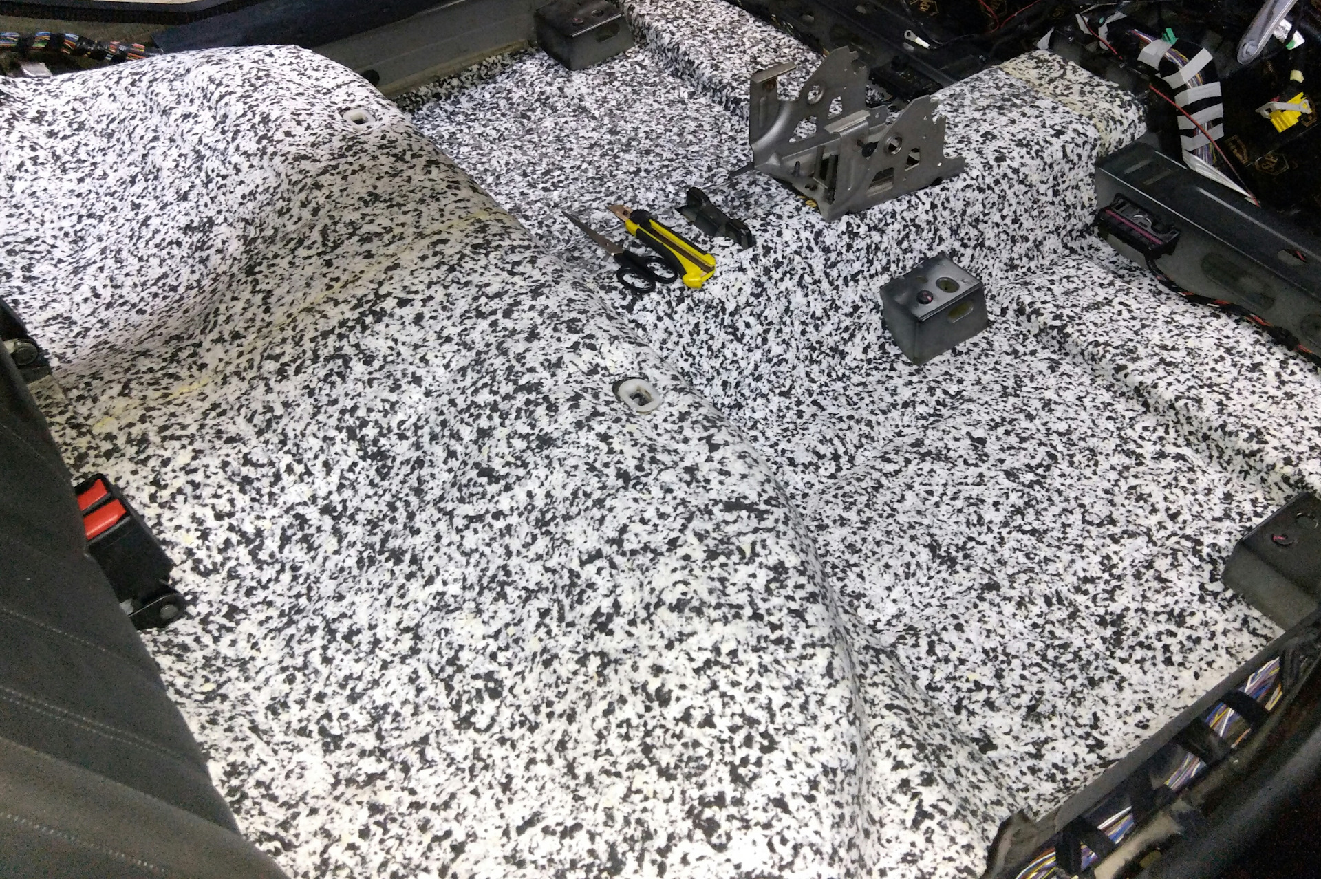 Вторым слоем на все полы включая задний диван — Black Tone 6mm. Ушло 5 или 6 листов.