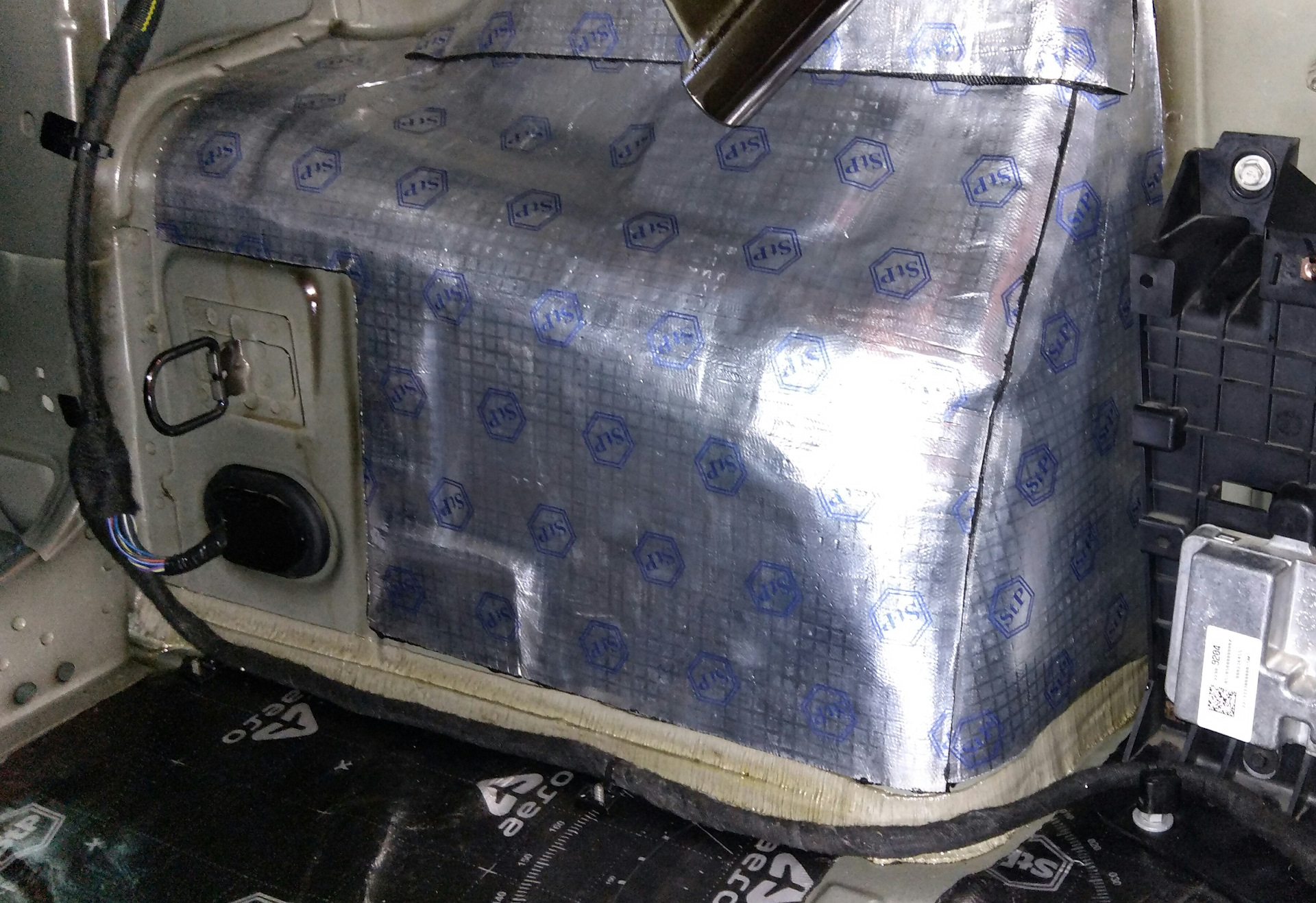 В багажнике закатал весь пол aero plus 3 мм, ушло ~ 5 листов. Сверху не стал класть мягкие материалы, т.к. до этого там была вода, я пока мониторил, всё ли я полечил (баян, как у всех). А сейчас решил ничего уже не доделывать. Штатный толстый пол на докатку и хорош.