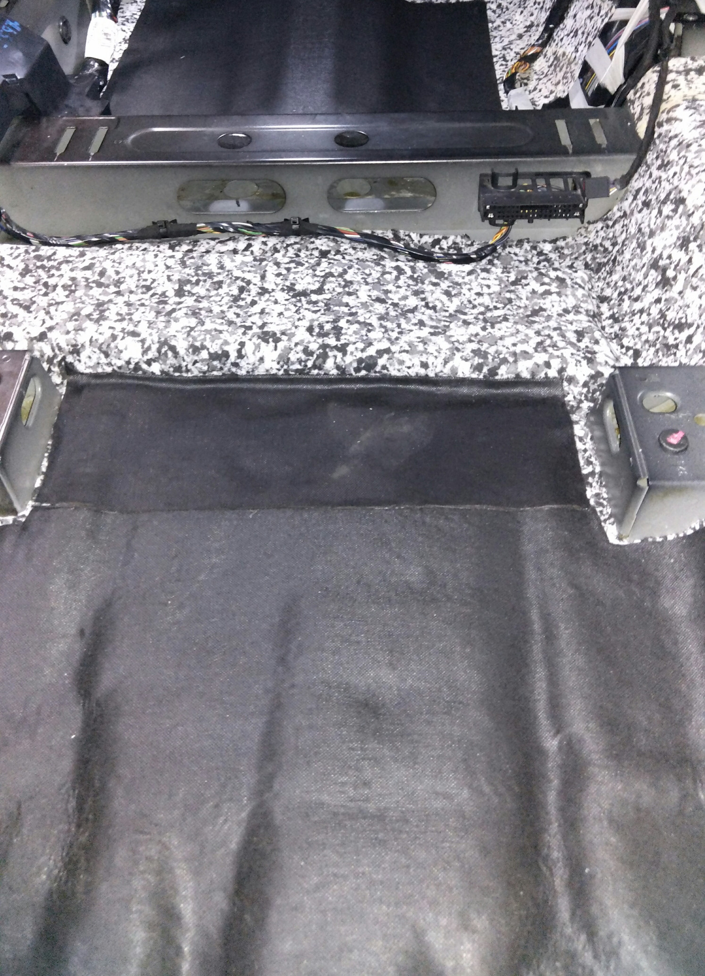 Весь штатный пол вернул на место, какие-то явно торчащие куски ваты отрезал ножом, где они явно не влезут. А так запихал его нормально, всё притопталось.