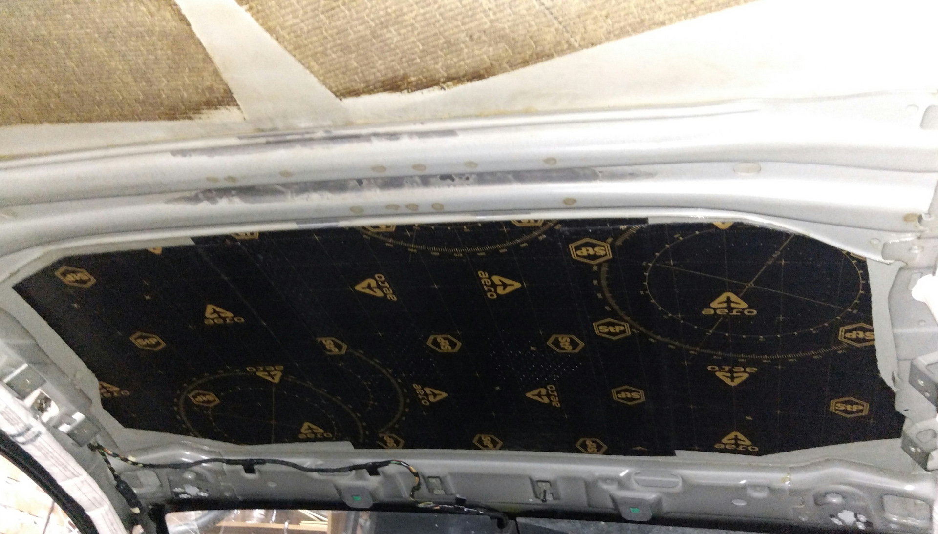 Крышка багажника — разочарование. В передней части очень мало окон, звук при дожде от крышки багажника всё равно остался звонкий, не такой, как крыша. К изгибу в задней части добраться можно, но эффекта от этого мало. Туда aero 2мм (не больше 1 листа), на эти мизерные куски немного акцента. А на штатную обшивку крышки Biplast Premium 15 mm (1 лист).