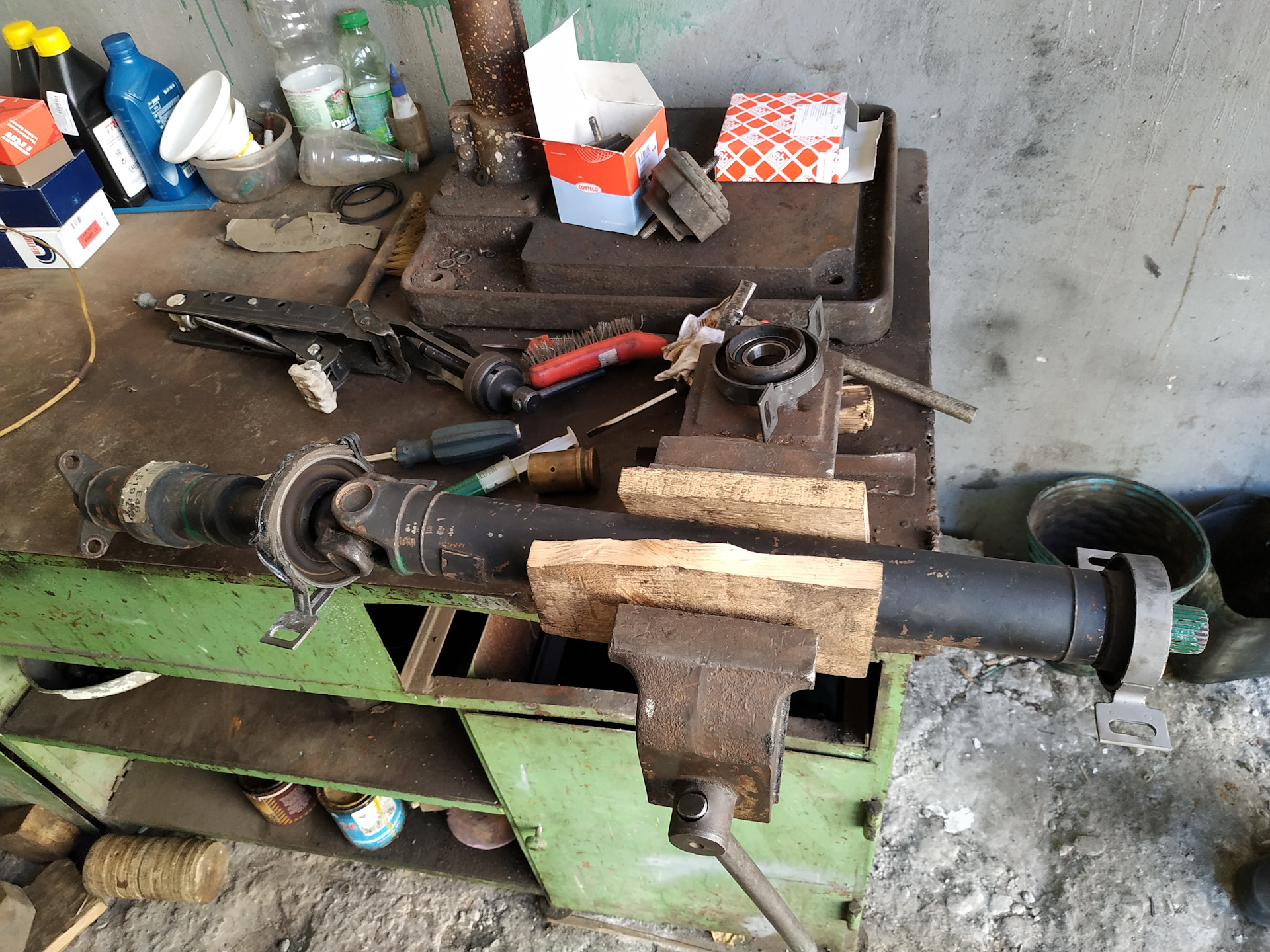 Если не ошибаюсь, то в 2017 году у меня было похожая проблема, но тогда на диагностике был выявлен люфт крестовины, а может и двух, не помню уже… Тогда я купил Б/У кардан и заменил два подвесных, центрирующую втулку и эластичную муфту.