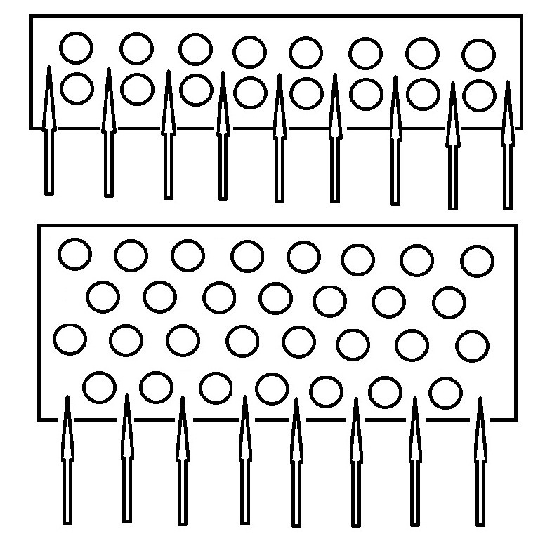 Потому что их расположили в шахматном порядке, физически размеры радиаторов одинаковы, .