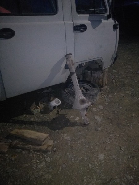 Разбило крестовину заднего кардана. Отвезли их токарям. Те обнаружили, что нет одной заглушки, поэтому весь ремонт с заменой крестовин выйдет в 13500р. Нам это дорого, поэтому мы предпочли купить новый.