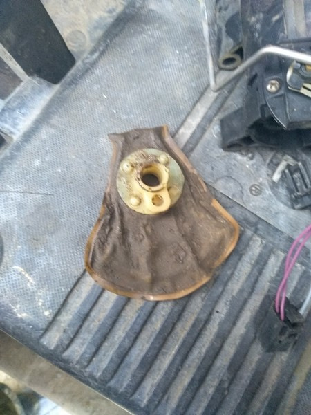 Решили поменять шкворни и таки установить дисковые тормоза. И понеслась. При разборе ШОПКа после удаления полуоси из моста было обнаружено, что шлицевая полуоси провёрнута на пол зуба. Подшипниковые шкворни, которые были установлены ранее не нами, были полностью уничтожены временем и грязью. Втулки в цапфе видимо с 2007 года никто ни разу не менял. Зато кто-то очень заботливо и обильно натрамбовывал поворотный кулак смазкой шрус. Настолько обильно, что мост был заполнен практически под завязку.
