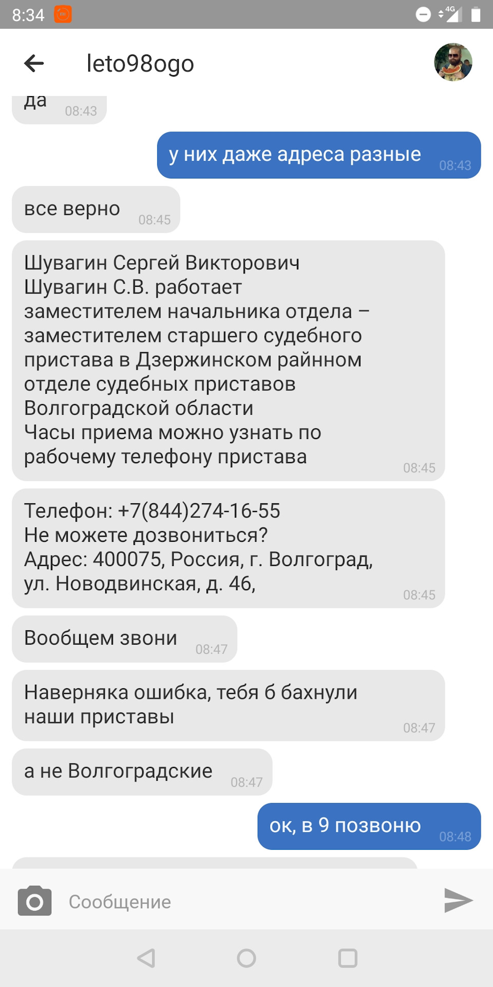 Естественно, до конца дня я так и не дозвонился до приставов, несмотря на многочисленные попытки. Про себя думаю — в начале сентября собирался в Грузию, а тут долг перед приставами больше 10к, ммммдаааа… На следующий день ни свет ни заря поехал в Волгоград, попал с очередь у дверей этого присутственного места (приехал за час до открытия), пройдя армагедец случившийся после открытия дверей, когда про очередность всё резко забыли, попал на приём ажно к заместителю начальника отдела ФССП.