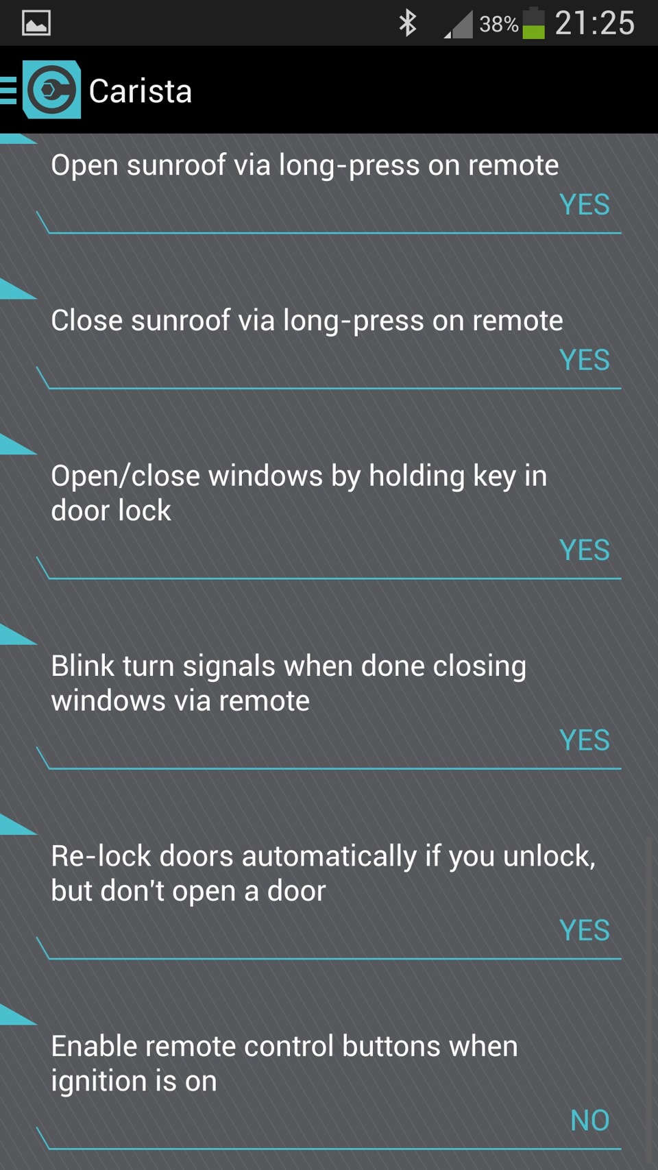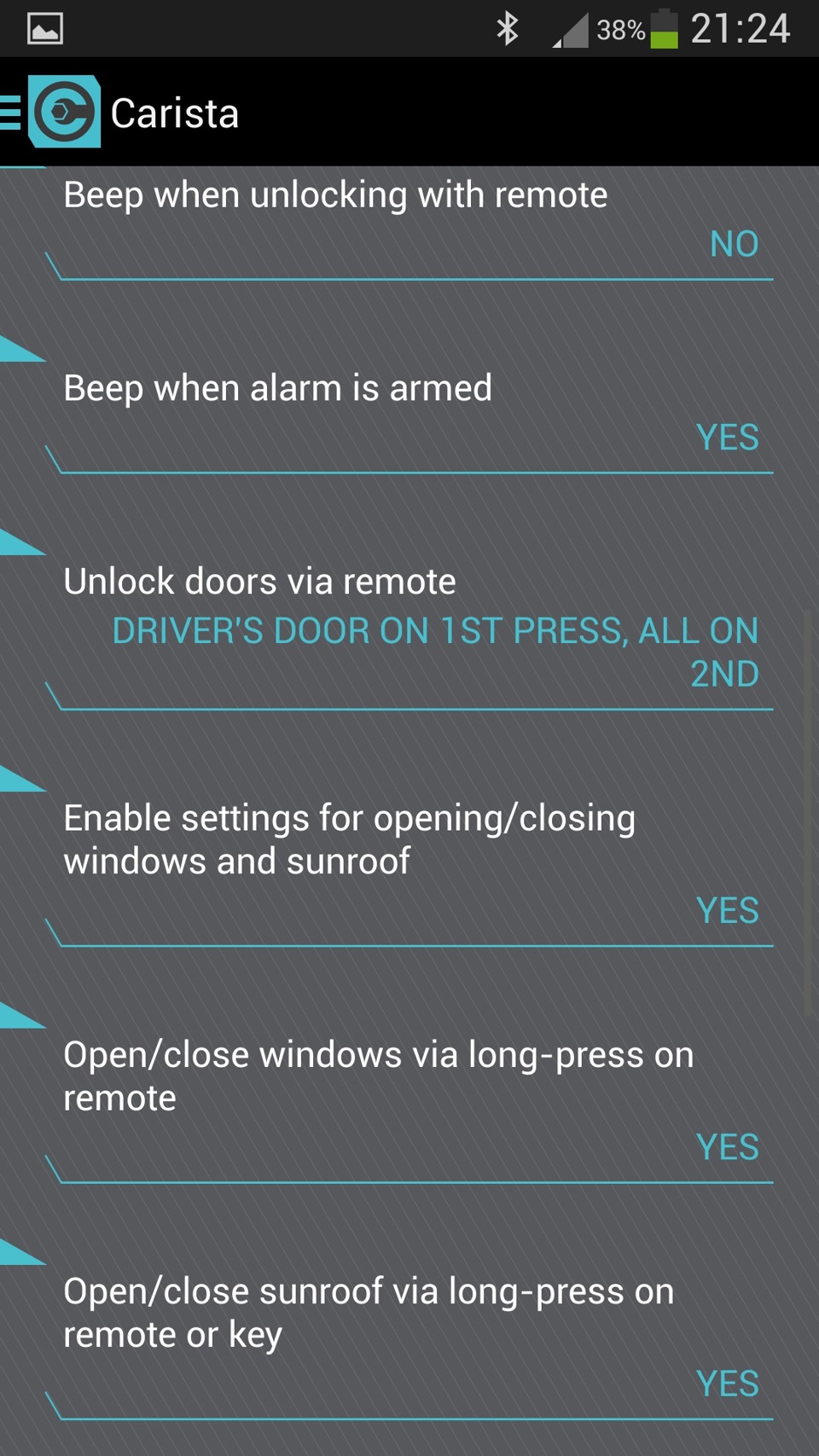 Другие функции либо уже активны (их можно отключить), либо недоступны в нашем седане. Себе активировал блокировку дверей, дворники по скорости авто, клаксон без зажигания.