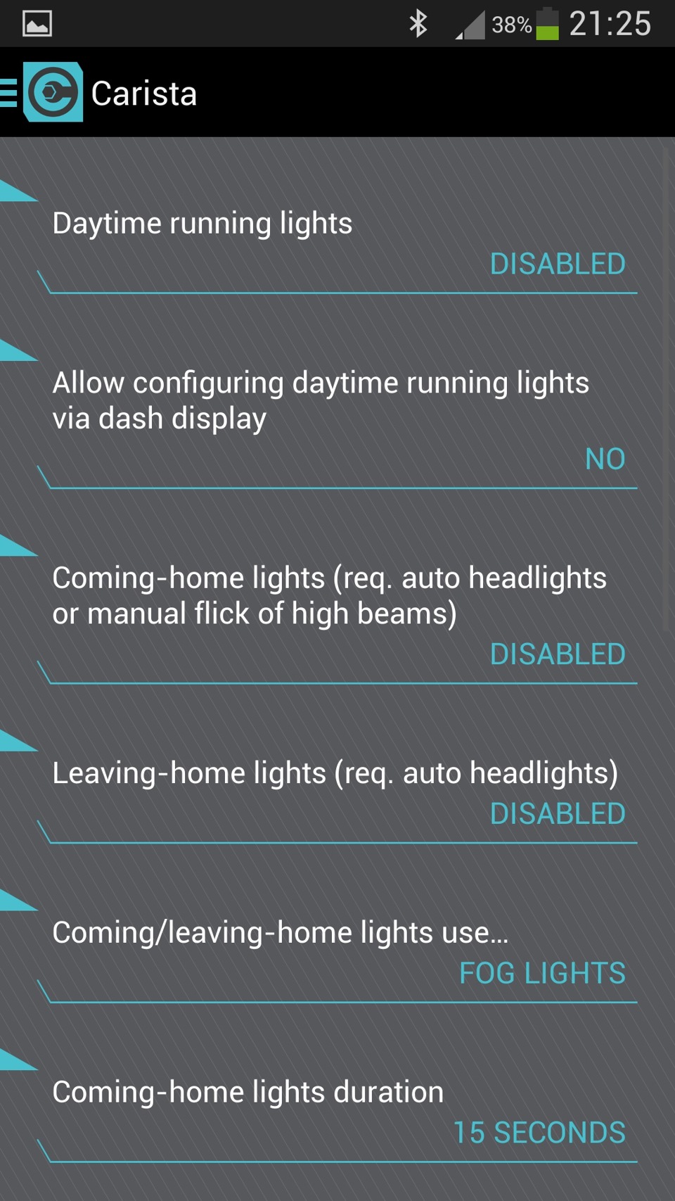 Насколько помню, если программа просит выбрать авто, значит нет коннекта со сканером. У меня бывало, когда забывал включить его. А так он сразу без лишних вопросов должен вывести меню настроек. Проверяй подключение. Кстати, у меня если одновременно включен еще torque pro, то Carista уже не подключается к сканеру.