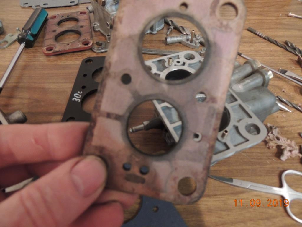 В один из дней, занимаясь установкой нового генератора, на заведённом двигателе. обращаю внимание на карб, а он стал влажным, из под двух прокладок (прокладка под верхней крышкой карба и прокладка перед дроссельными заслонками были в сырости) …Пришлось все глушить и снимать карб…