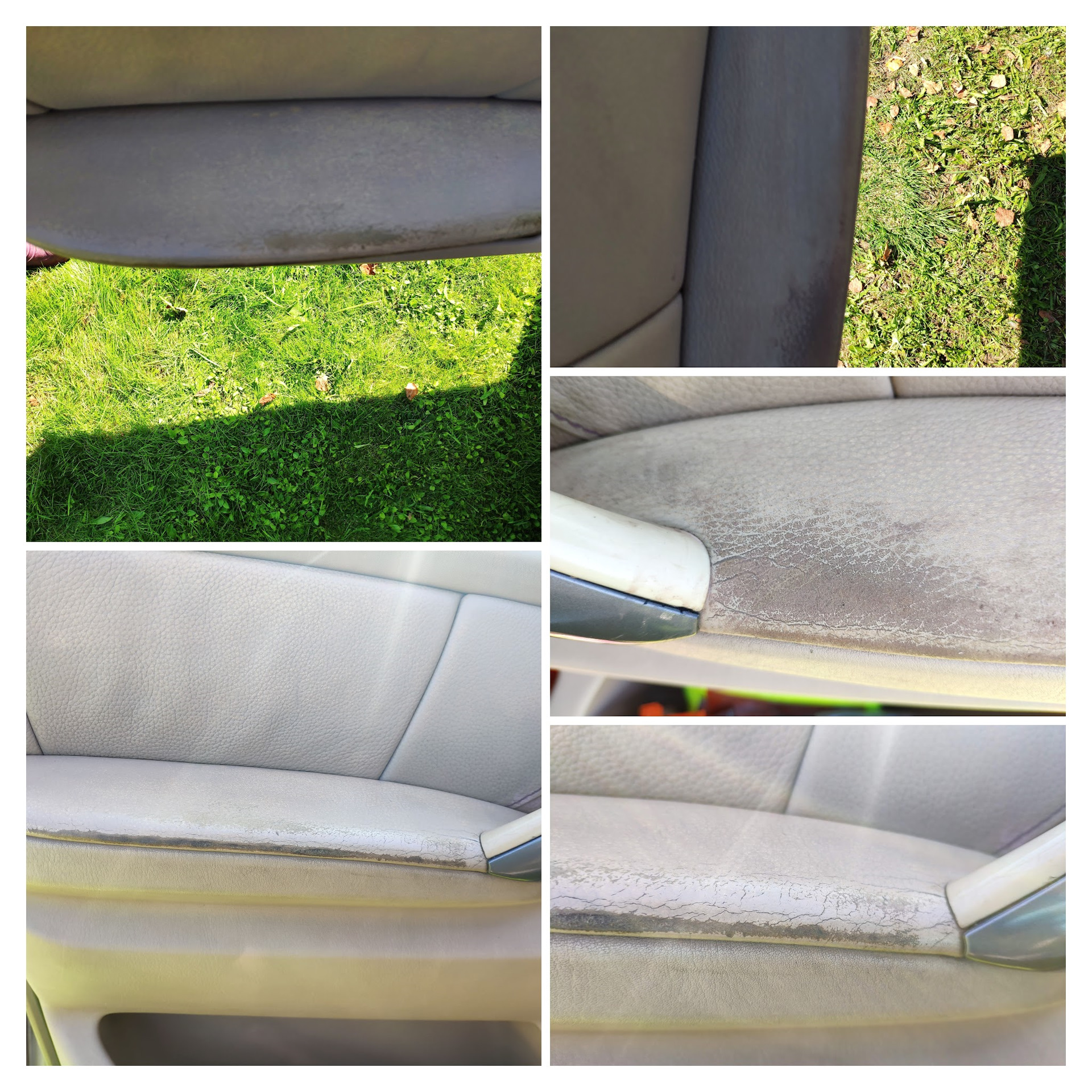 Стоит заметить, что фактура кожи повреждена не сильно и не на всей поверхности сидений. Возможно, на фото это не так видно. В целом, краска фактуру повторяет.