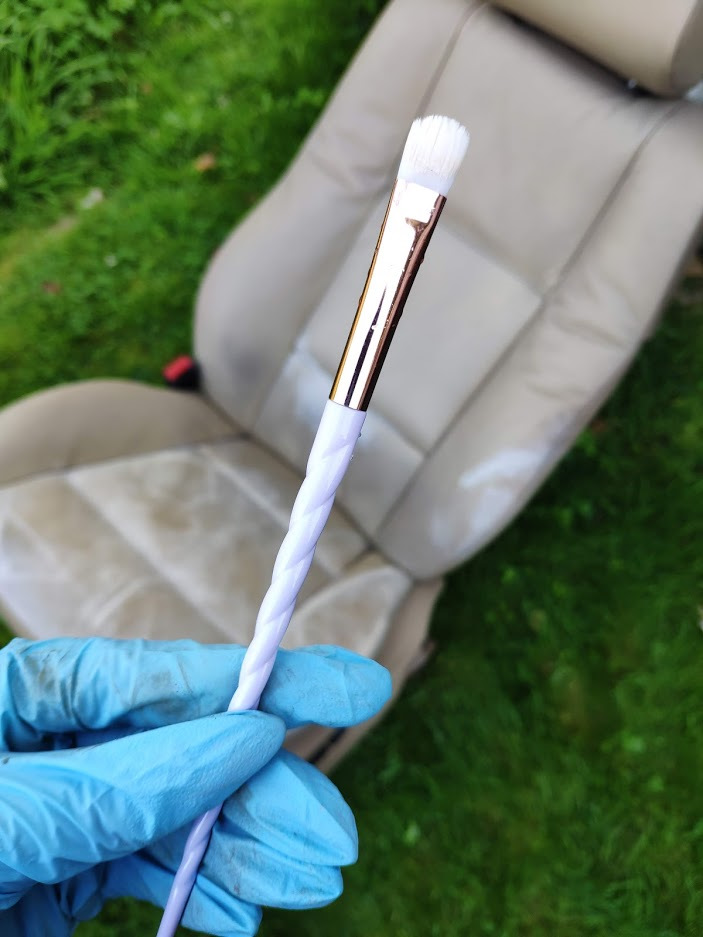 Жидкая кожа была нанесена только на трещины. Я наносила только один слой. Возможно, это было моей ошибкой. Только когда начала красить водительском сиденье, я поняла что одного слоя будет недостойно.