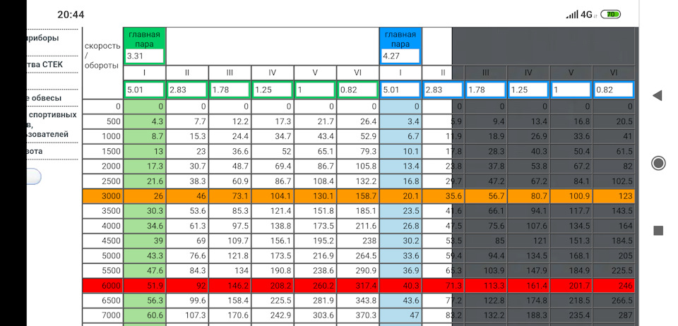 Сделал таблицу. В обеих столбцах передаточные числа МЛки. Но разные гл. Пары. 3.31 и 4.27
