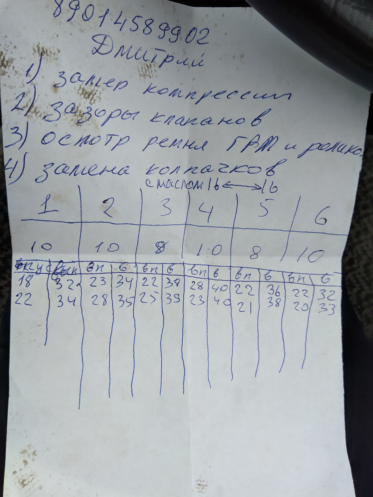 Итак, в двух словах, двиг подъедал масло, не так чтобы сильно, но было заметно) Масло первый раз тогда залил Идемитсу 5в40. Далее жор стал резко увеличиваться, на холодную был виден некий дымок из трубы. По моим грубым замерам получилось так: на 2 тыс км ушло пол щупа масла, не знаю сколько это в граммах, но думаю много)) Грешил на маслосъемные. Нашёл сервис не далеко от себя. Вроде и отзывы хорошие, и цена адекватная. Мастер — дедок лет 50, тоже показался мне вполне нормальным). Договорился, загнал машину, но попросил перед этим замерить компрессию, на всякий. В итоге звонит мне через часика два, говорит что замерил компрессию, всё плохо)