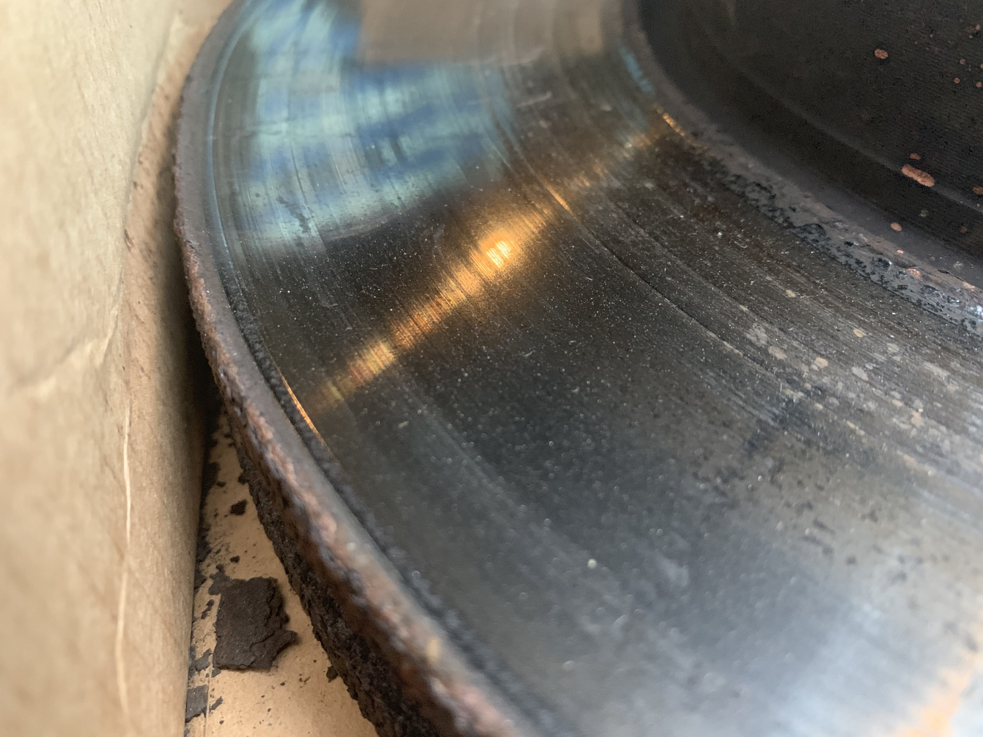 Начал смотреть диски и понял что они кончились — большая выработка, коррозия, бороздки, неравномерный износ