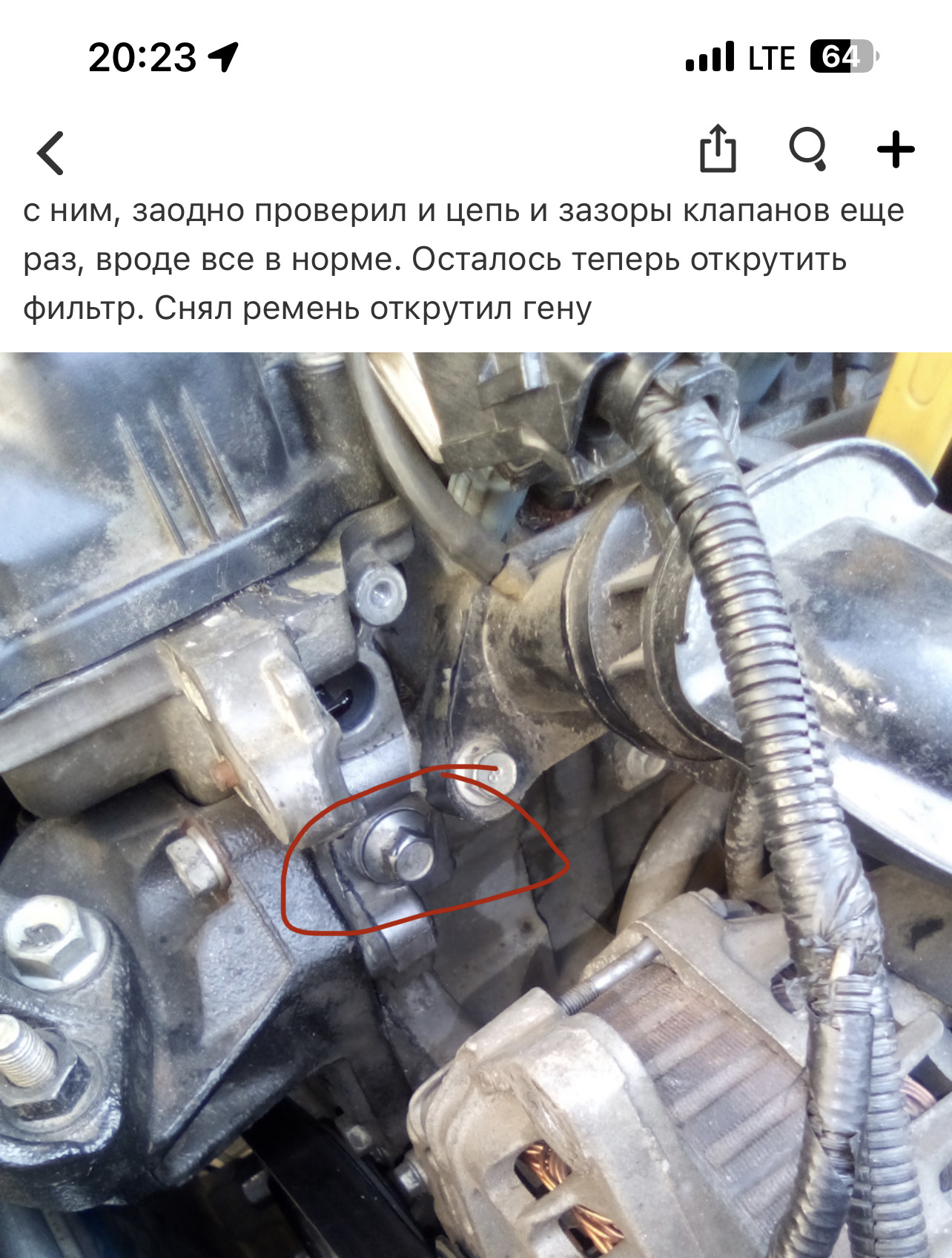 чепь на метках фазик тоже как целый. А вот с натяжителем ХЗ, его то не проверишь, ну думаю и Х.й с ним, заодно проверил и цепь и зазоры клапанов еще раз, вроде все в норме. Осталось теперь открутить фильтр. Снял ремень открутил гену