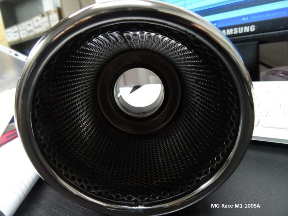 3. Насадка на глушитель MG-Race M1-100SA (завальцованная с перфорацией скошенная).