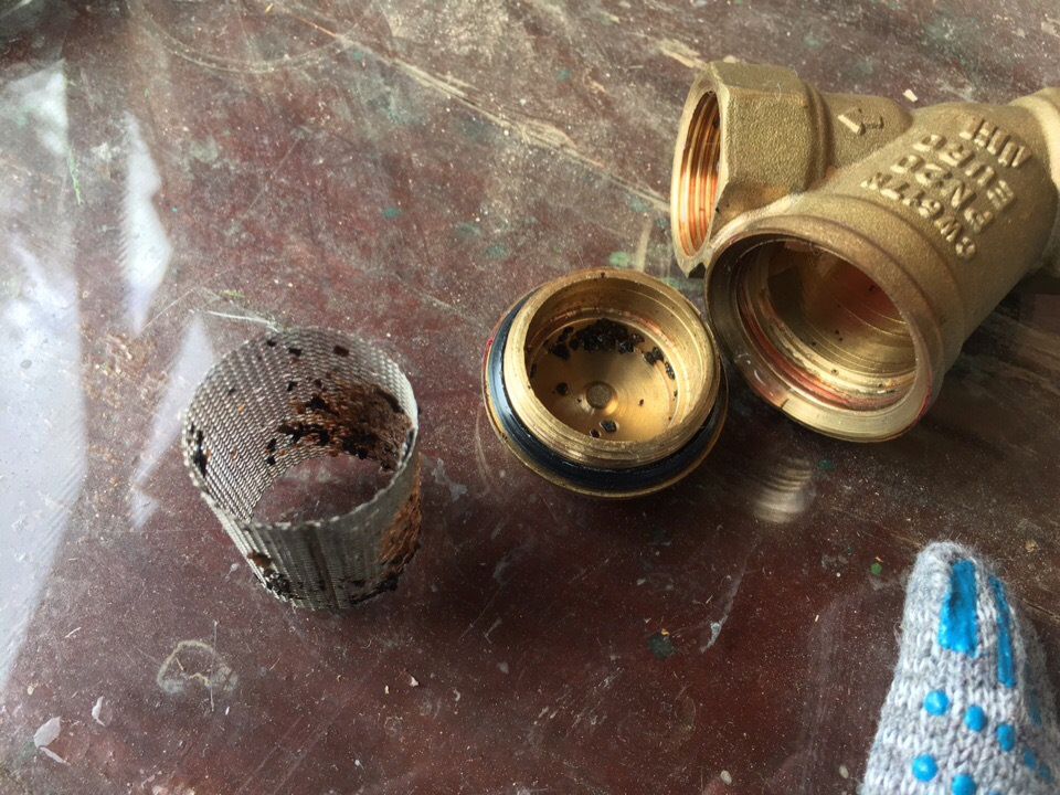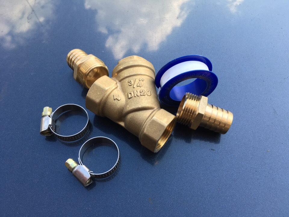 В ближайшем строительном магазине прикупил осадочный сетчатый фильтр DN20 PN20, два штуцера и хомуты.