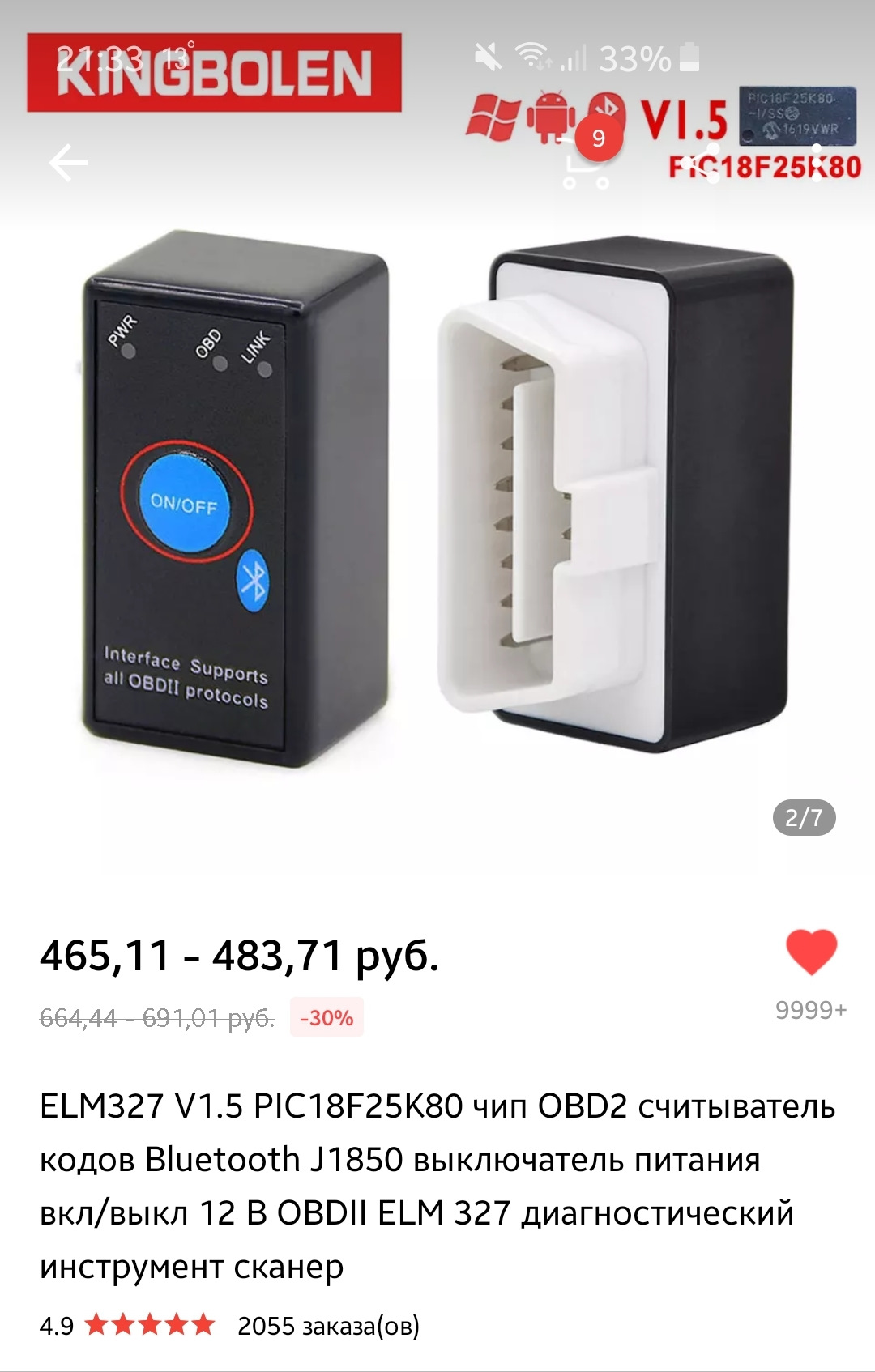 3. ELM327 V1.5 PIC18F25K80 чип OBD2 на Али