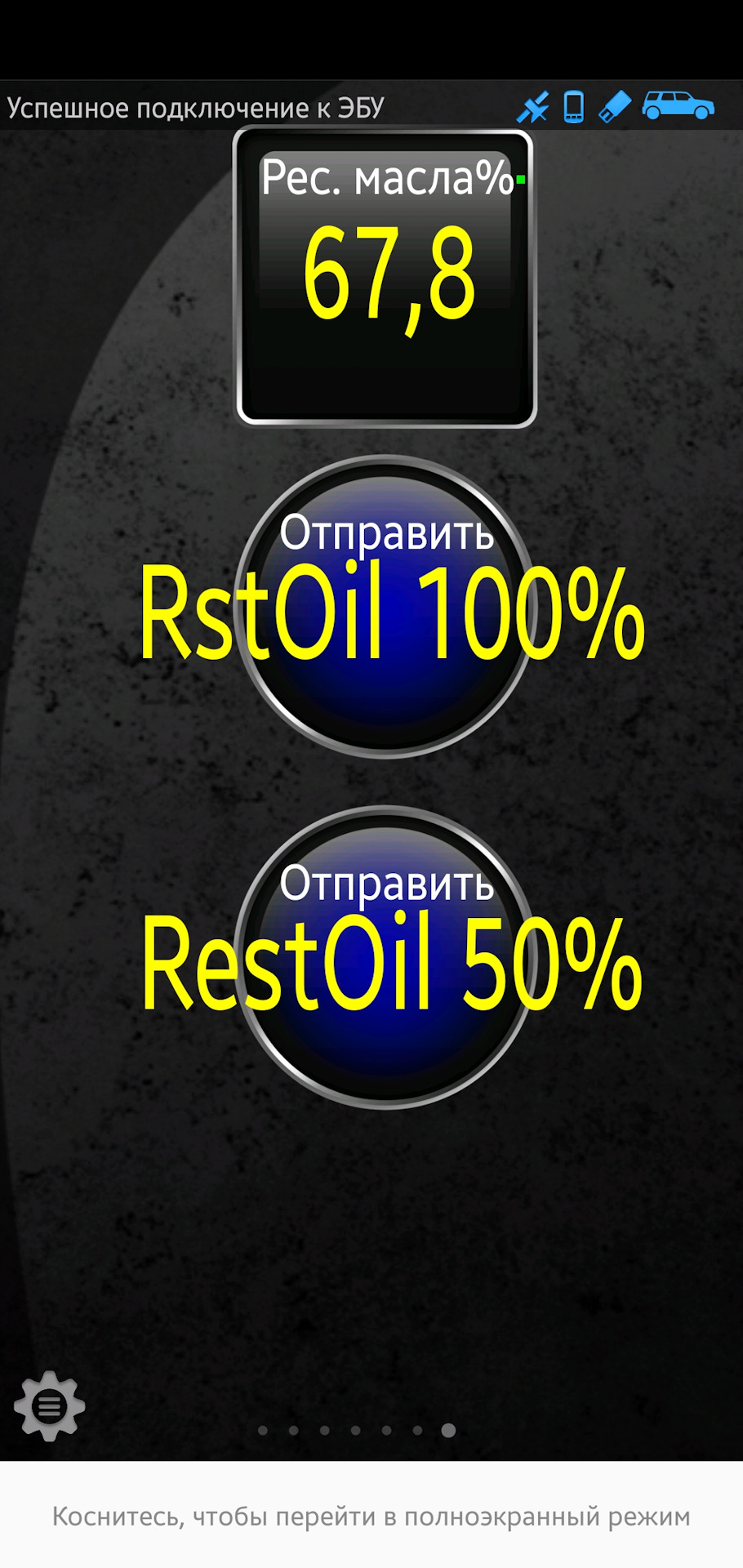 Две большие синие кнопки "Отправить 100%" и "Отправить 50%" как раз для сброса сервисного интервала замены масла. 100% сбрасывает межсервисный на 0, а 50% — соответственно, на 50%