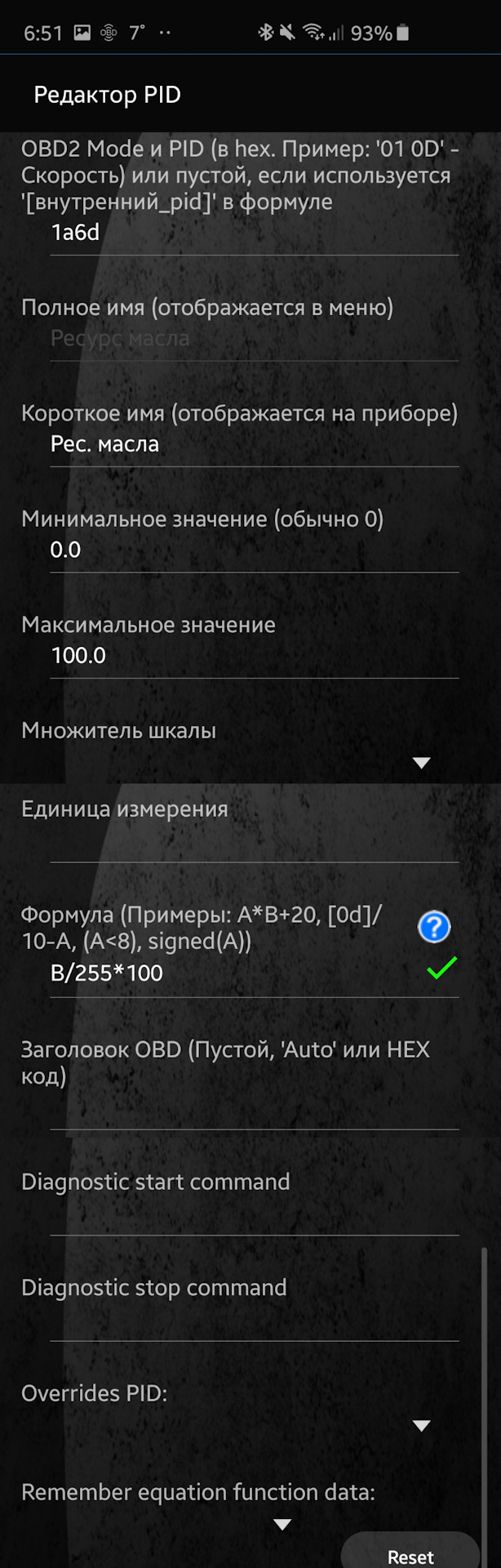 Для контроля можно разместить на этом же экране прибор "Ресурс масла %" PID: 1A6D.